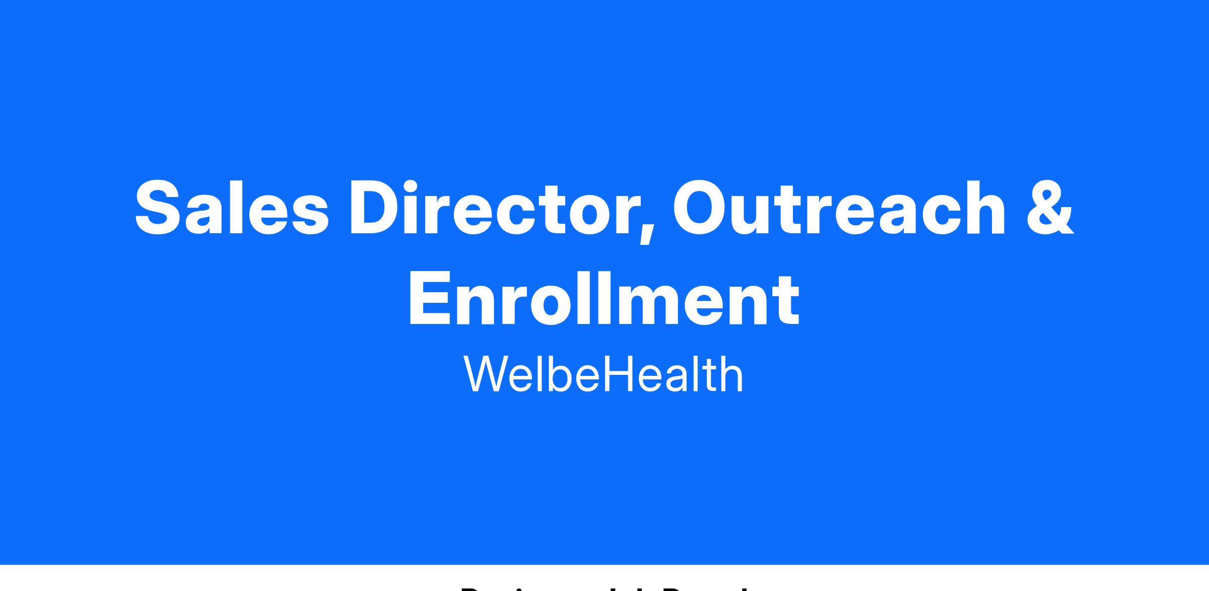 Benefits of Working at WelbeHealth: Apply your expertise in new ways as we rapidly expand. You will have the opportunity to design the way we work in the context of an encouraging and loving environment where every person feels uniquely cared for.