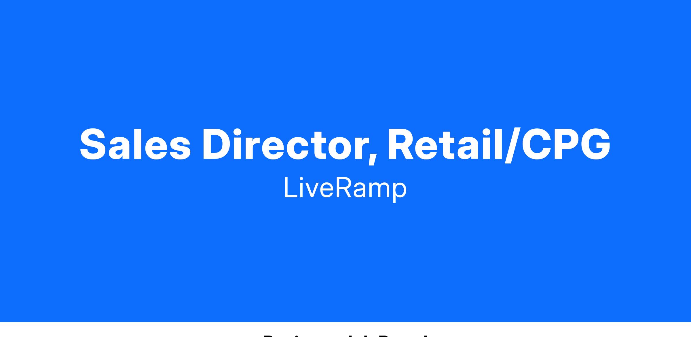 The Sales Director - Retail/CPG creates, identifies, and closes sales for the entire LiveRamp portfolio of solutions within a specific geographical region, industry, or set of named accounts. Prior experience selling marketing software, business intelligence, or analytics platforms in the enterprise space is required. This person must be a self-starting closer who can create a large pipeline of business within a short period of time and work with existing clients as well as new logo opportunities.