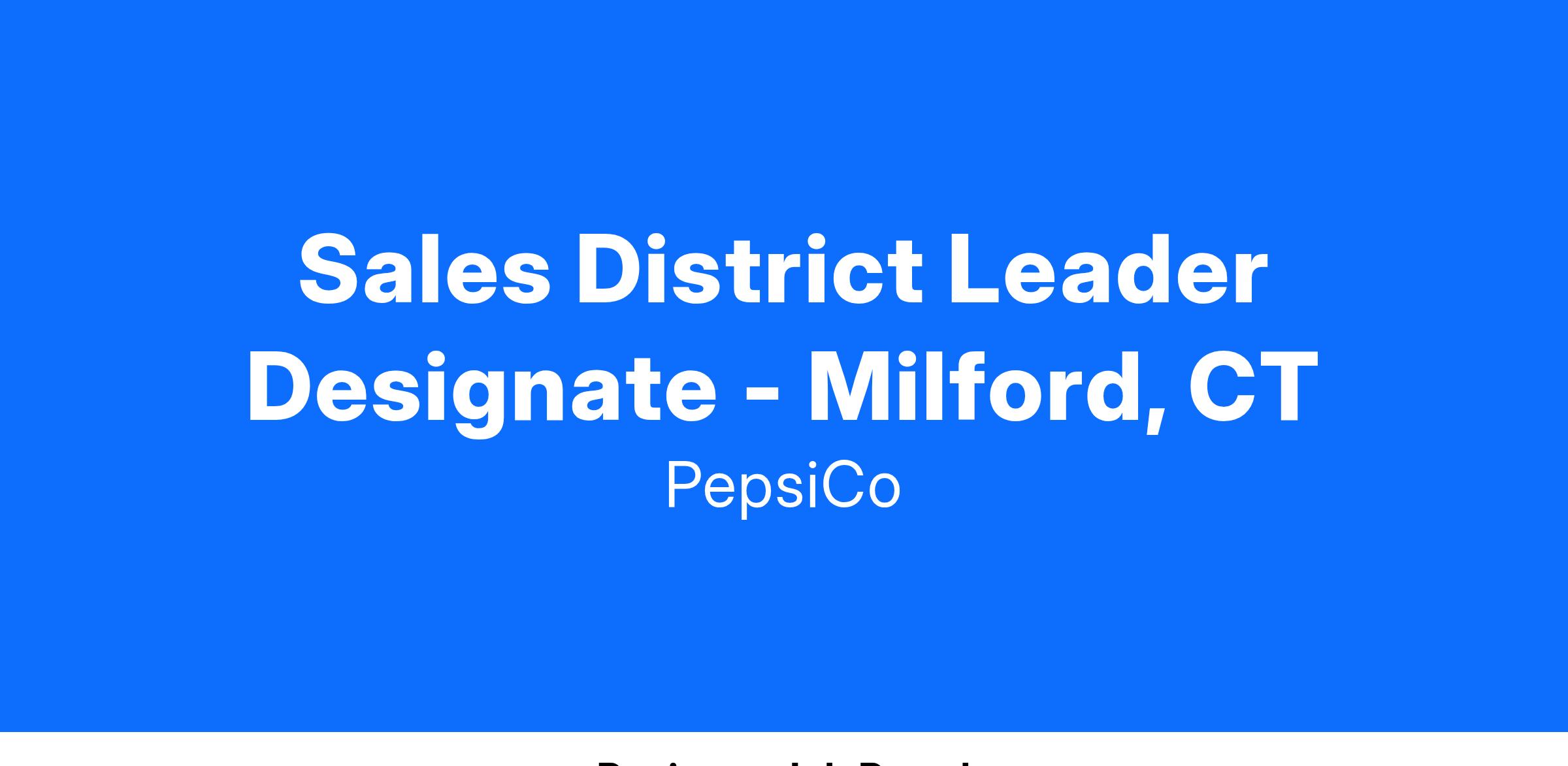 Sales District Leader Designate - Milford, CT