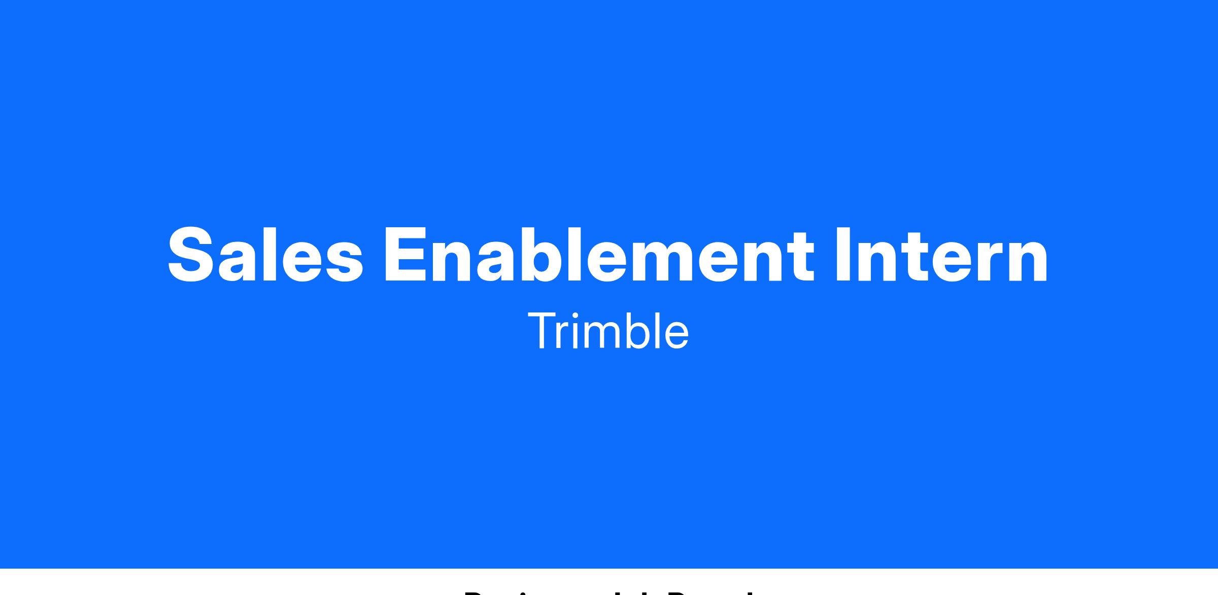 The CES Sales Enablement team focuses on supporting our Construction Sector, but also serves as a leader within the organization for operational efficiencies, training quality and development of best practices across Trimble. We support sales, sales enablement, product, sales operations and customer service/support teams with regular cross-collaboration into strategic initiatives across the organization. Our high quality work, professional & friendly team, and opportunities for growth make our team highly desirable to work on.