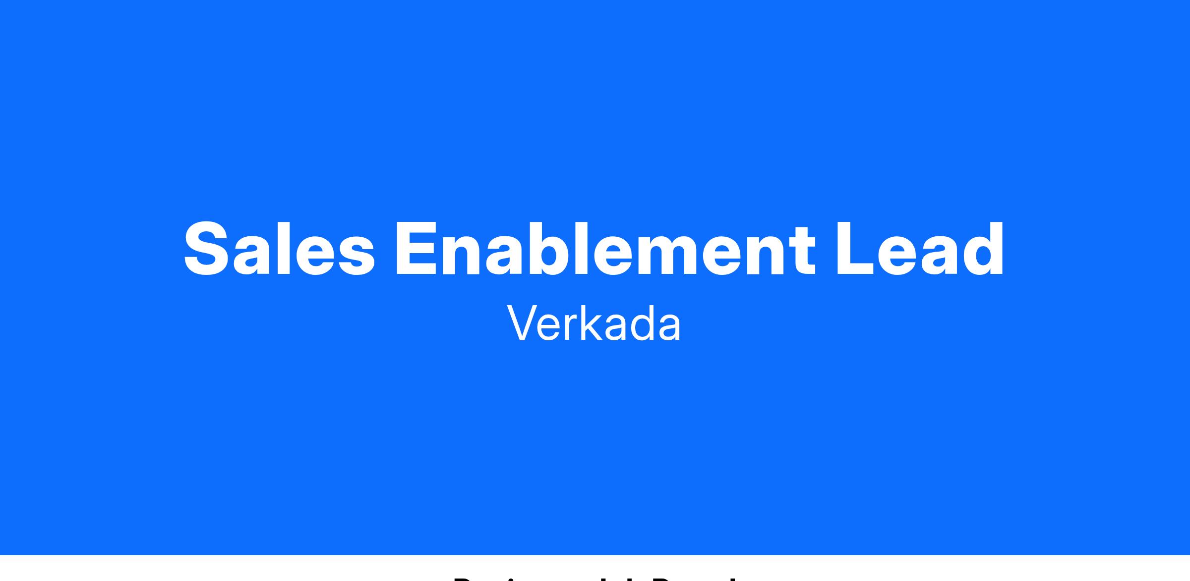 Verkada is building a world-class Sales organization and we need to build the supporting cast to drive a seamless onboarding experience, ensure team readiness, and increase overall productivity. We run Sales Enablement differently at Verkada and give our team members autonomy and ownership to innovate and adapt to drive success. As a Sales Enablement Lead, you’ll partner with Sales leadership to drive the end to end ownership and execution of both onboarding and enablement. You will have the opportunity to work hands-on with partners and subject matter experts that span across Verkada, gaining exposure from leaders in every department. To be successful in this role, you’ll need a passion for the art and science of sales and a solid understanding of how to operate in a sales support function.