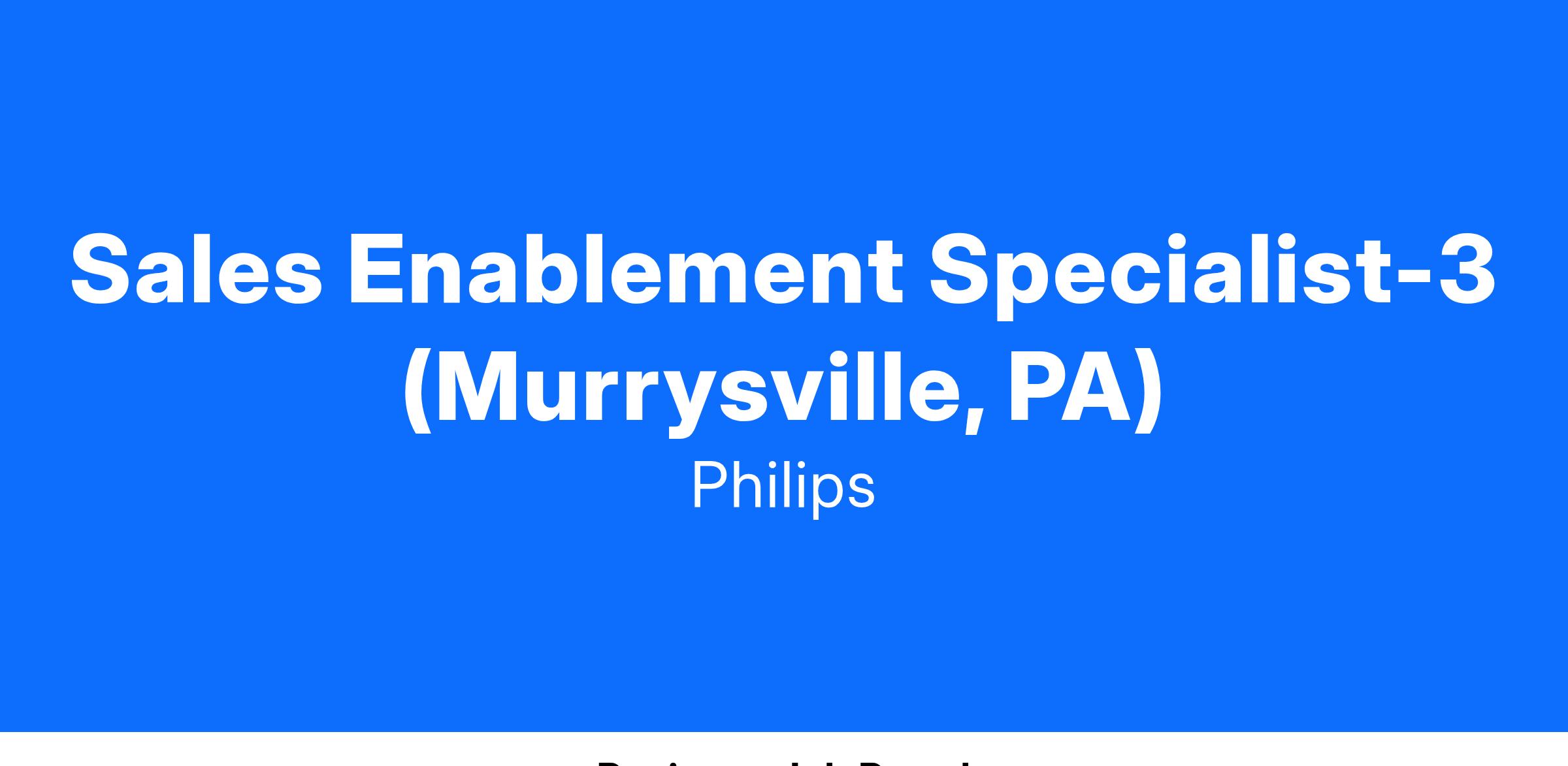 Sales Enablement Specialist (Murrysville, PA)