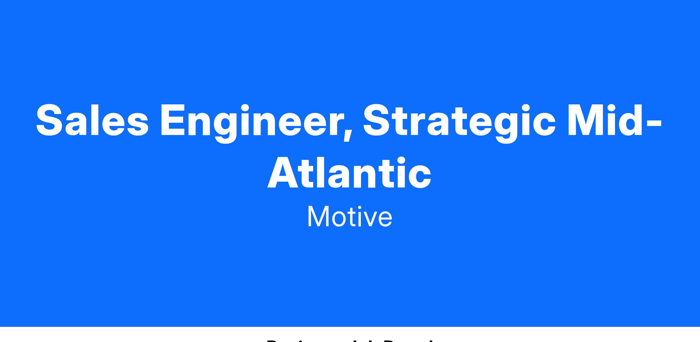 Sales Engineer, Strategic Mid-Atlantic