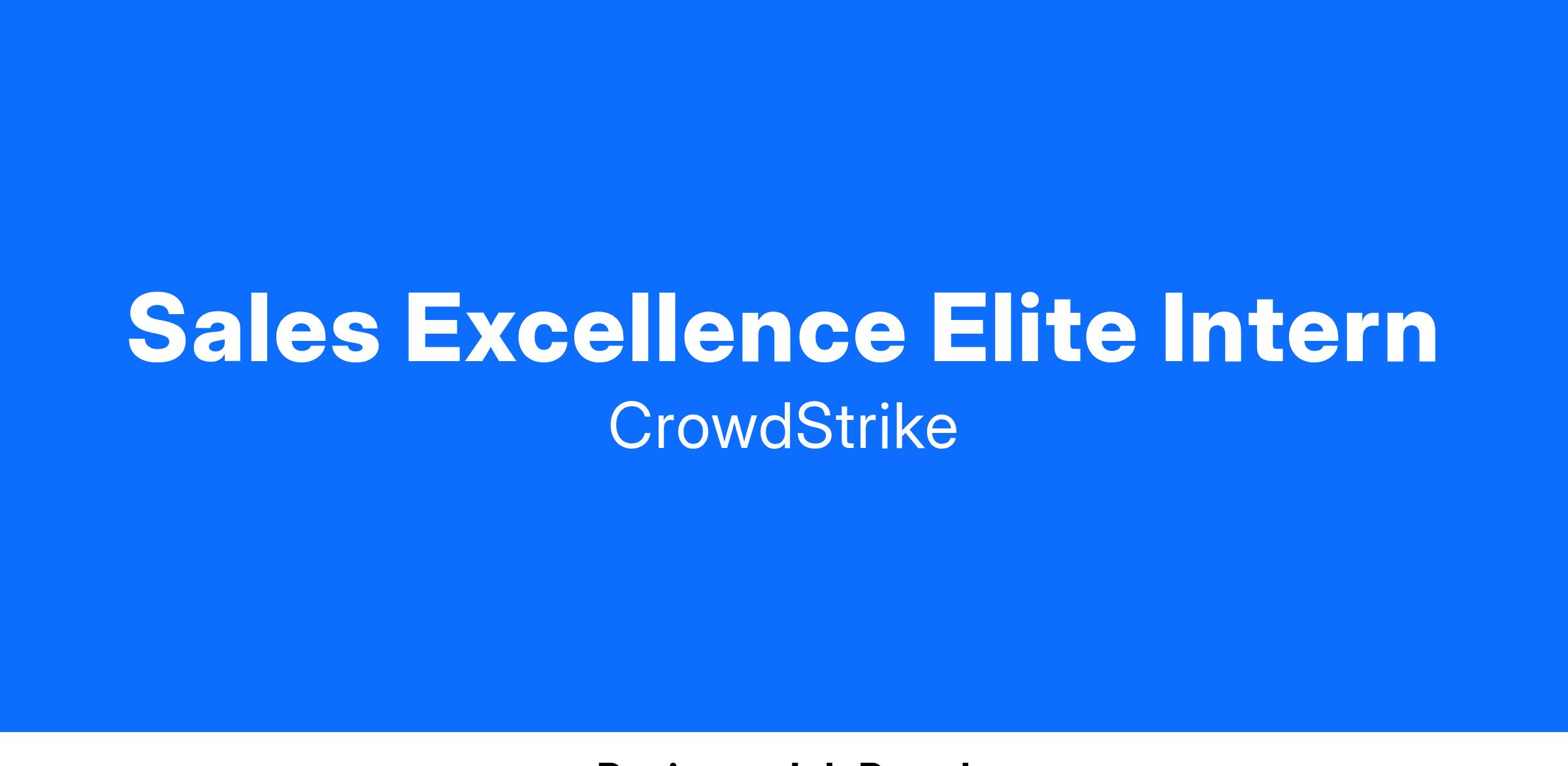 Our Sales Excellence Elite Program is dedicated to elevating the next generation of talent in our fight against adversaries with a structured curriculum, certifications, and an engaging environment. As a Sales Excellence Elite Intern, you will spend eight weeks in our competitive and immersive sales program gaining hands-on experience while working side by side with top industry professionals. You will take part in the full sales cycle and contribute to calling initiatives which accelerate company and individual growth – all while earning your CrowdStrike Sales MBA in our solutions, processes, and culture!