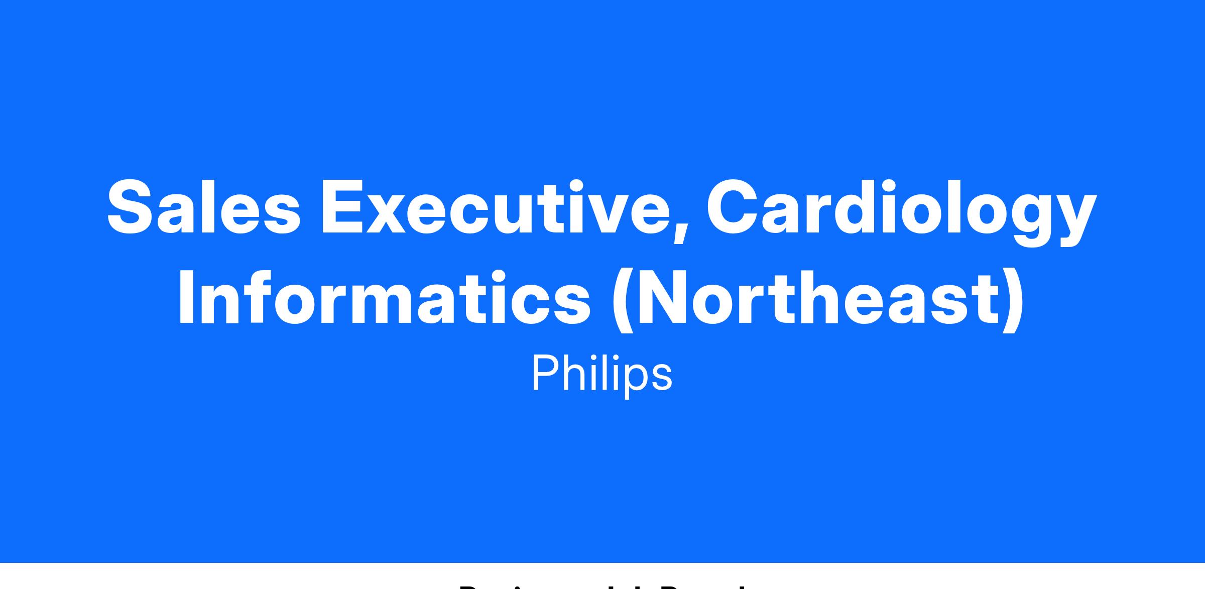 As the Sales Executive, Cardiology Informatics you will be responsible for selling our Cardiology Informatics Portfolio into existing and new Health Systems, Imaging centers, and Office-Based Labs in your assigned territory. Working closely with the cardiology clinical and technical specialists’ team as needed.
