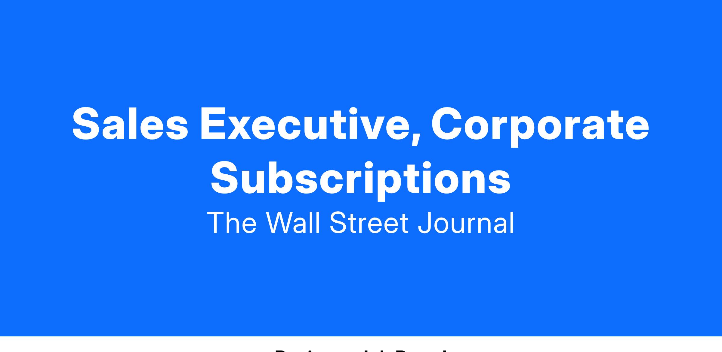Our Enterprise Sales team is currently seeking a New Business Sales Executive to join our Corporate sales team. The New Business Sales Executive is responsible for driving new business of The Wall Street Journal, Barron’s and Marketwatch products through prospecting, cold-calling and client-calls. You will nurture leads while feeding their prospect funnel. You will be responsible for initiating sales activity with new-to-company prospects and new buying centers within existing clients through lead research and qualification.