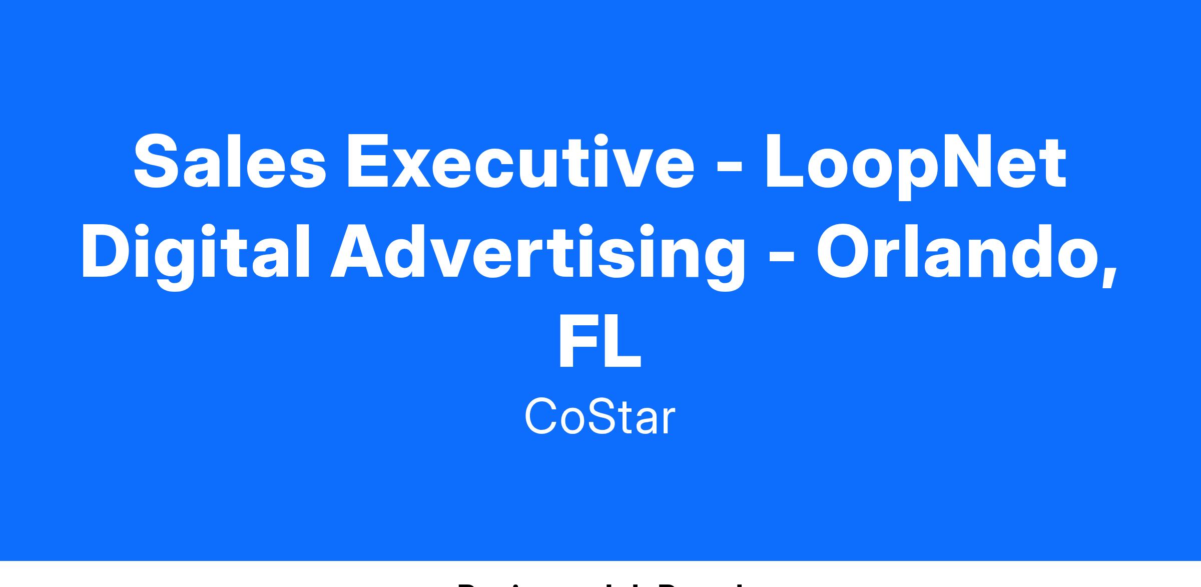 As a Sales Executive with LoopNet you will be part of a growth-oriented, innovative company and represent the industry’s most sophisticated digital advertising and marketing solutions. You will partner with the world’s top owners and brokers to develop a comprehensive digital marketing strategy to showcase and differentiate their portfolio of properties online. Key to your success will be your ability to build long-lasting, service-focused, customer relationships. You will achieve this in part by advising on product frequency, reach and brand efficacy and highlighting return on investment using our proprietary analytic tools and reporting capabilities. Day to day, you will leverage CoStar Group’s deep knowledge and expertise in the Commercial Real Estate industry to build your client portfolio by prospecting, studying industry trends and news, and conducting effective product demonstrations.