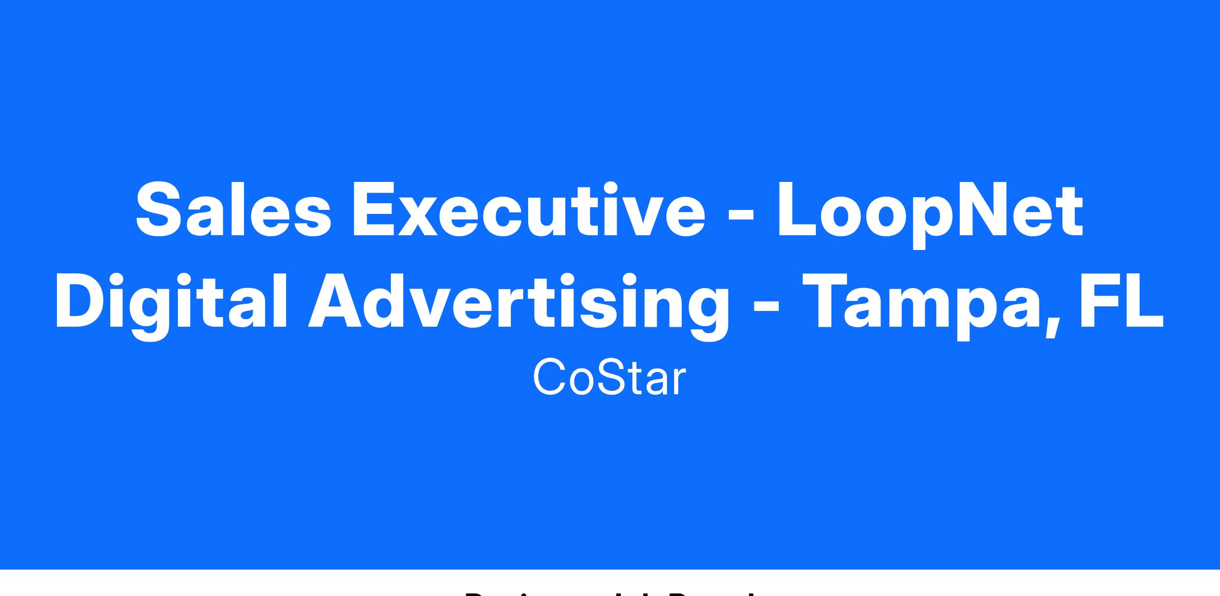 As a Sales Executive with LoopNet you will be part of a growth-oriented, innovative company and represent the industry’s most sophisticated digital advertising and marketing solutions. You will partner with the world’s top owners and brokers to develop a comprehensive digital marketing strategy to showcase and differentiate their portfolio of properties online. Key to your success will be your ability to build long-lasting, service-focused, customer relationships. You will achieve this in part by advising on product frequency, reach and brand efficacy and highlighting return on investment using our proprietary analytic tools and reporting capabilities. Day to day, you will leverage CoStar Group’s deep knowledge and expertise in the Commercial Real Estate industry to build your client portfolio by prospecting, studying industry trends and news, and conducting effective product demonstrations.