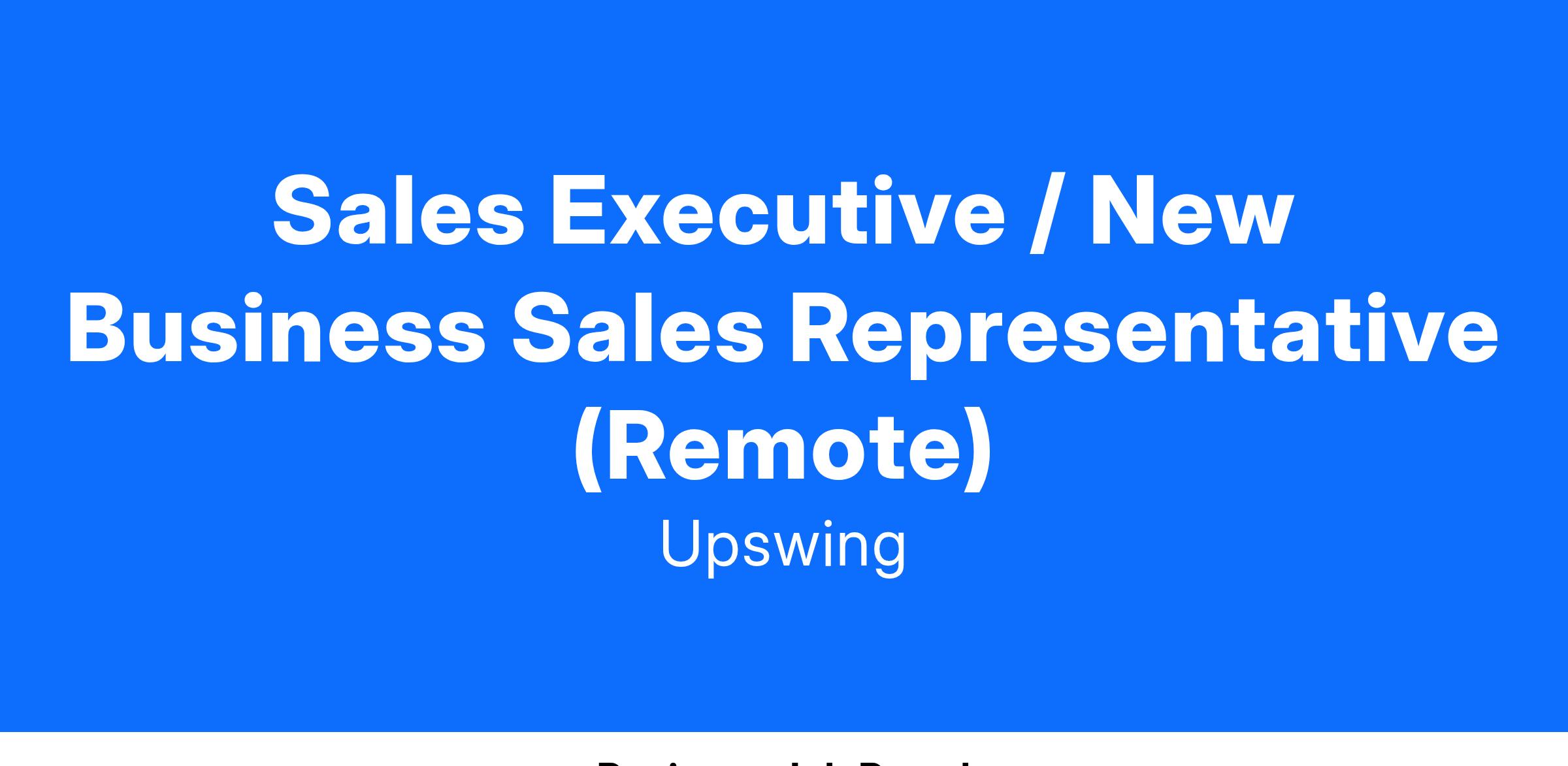 Overview: Upswing is expanding and looking to hire two Sales Executives / New Business Sales Representatives to drive our growth in the Central and East territories. Although remote, we are open to candidates living anywhere in the US.