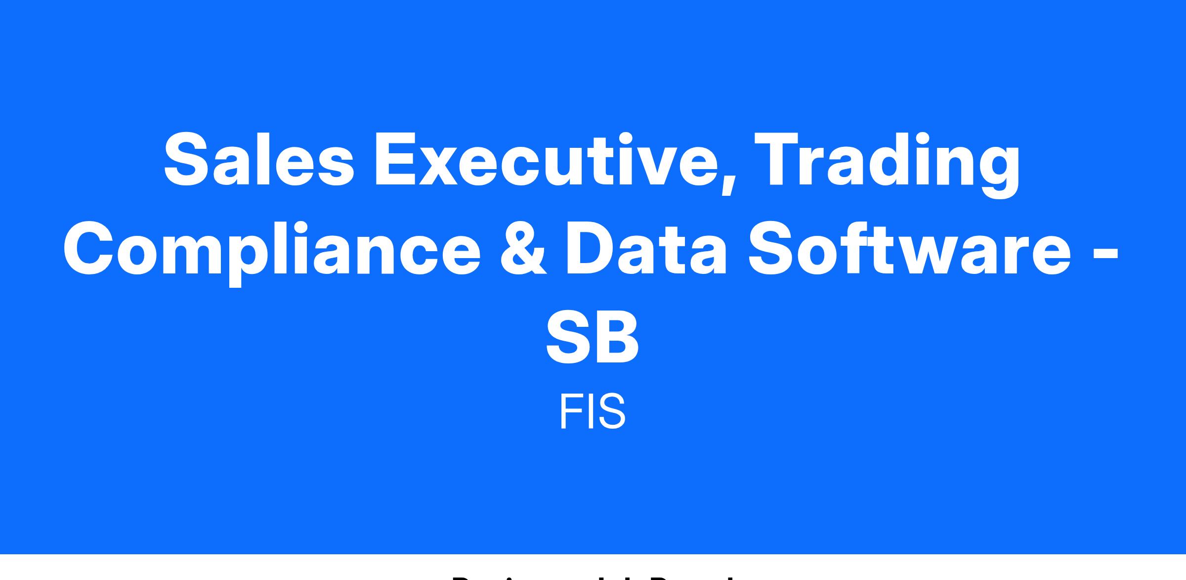 Experienced Sales Executive that is a true ‘Hunter’ with a proven track record selling complex enterprise-wide software systems into Sell-Side and Buy-Side financial institutions. The Sales Executive’s primary responsibilities will be to uncover new business sales opportunities for FIS’ suite of Trading & Compliance solutions.