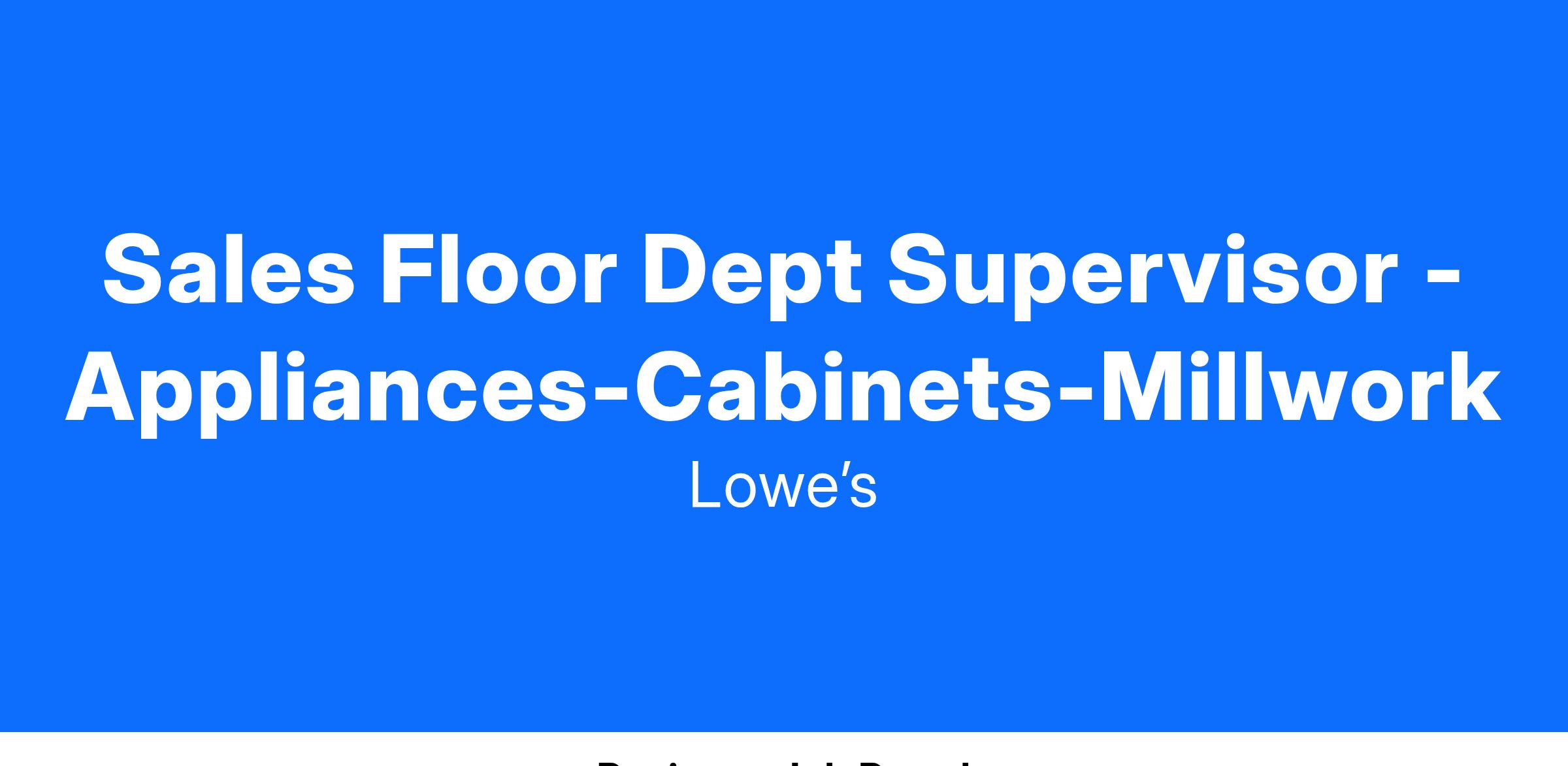 Sales Floor Dept Supervisor - Appliances-Cabinets-Millwork
