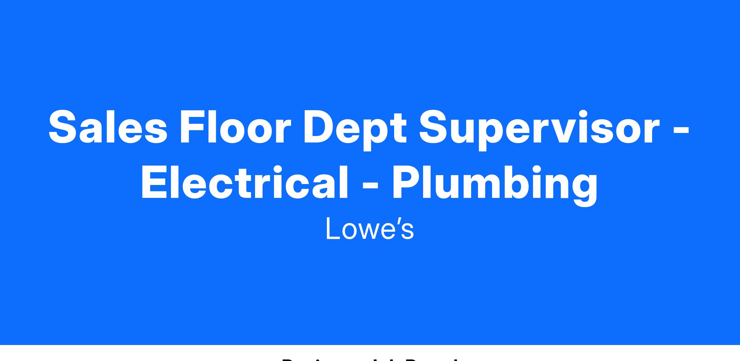 Sales Floor Dept Supervisor - Electrical - Plumbing