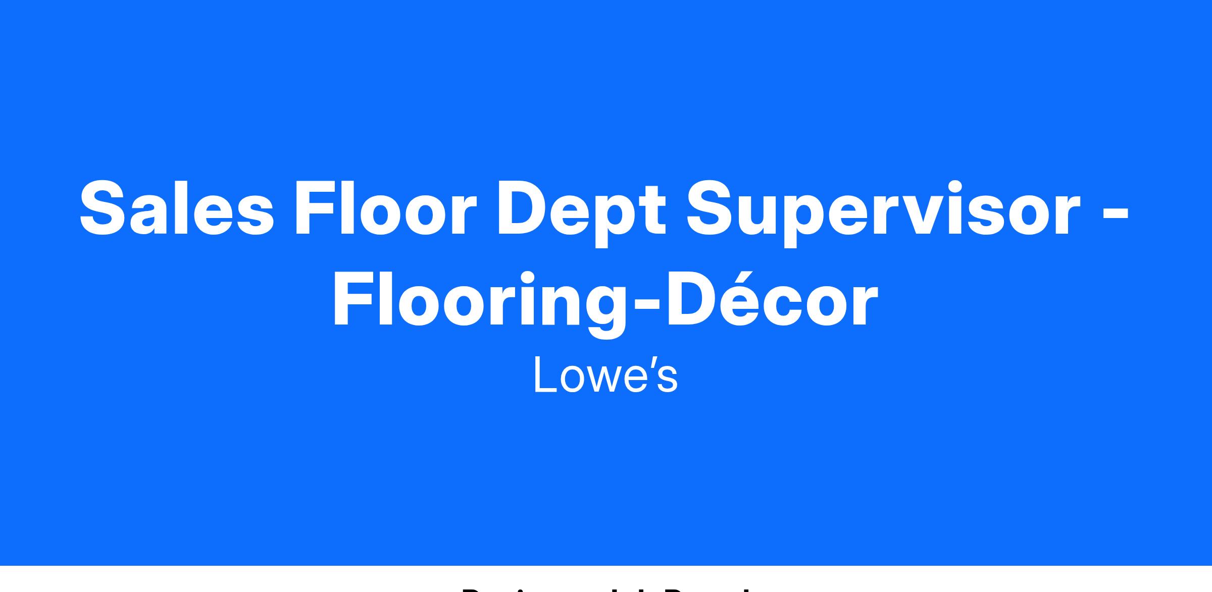 Sales Floor Dept Supervisor - Flooring-Décor