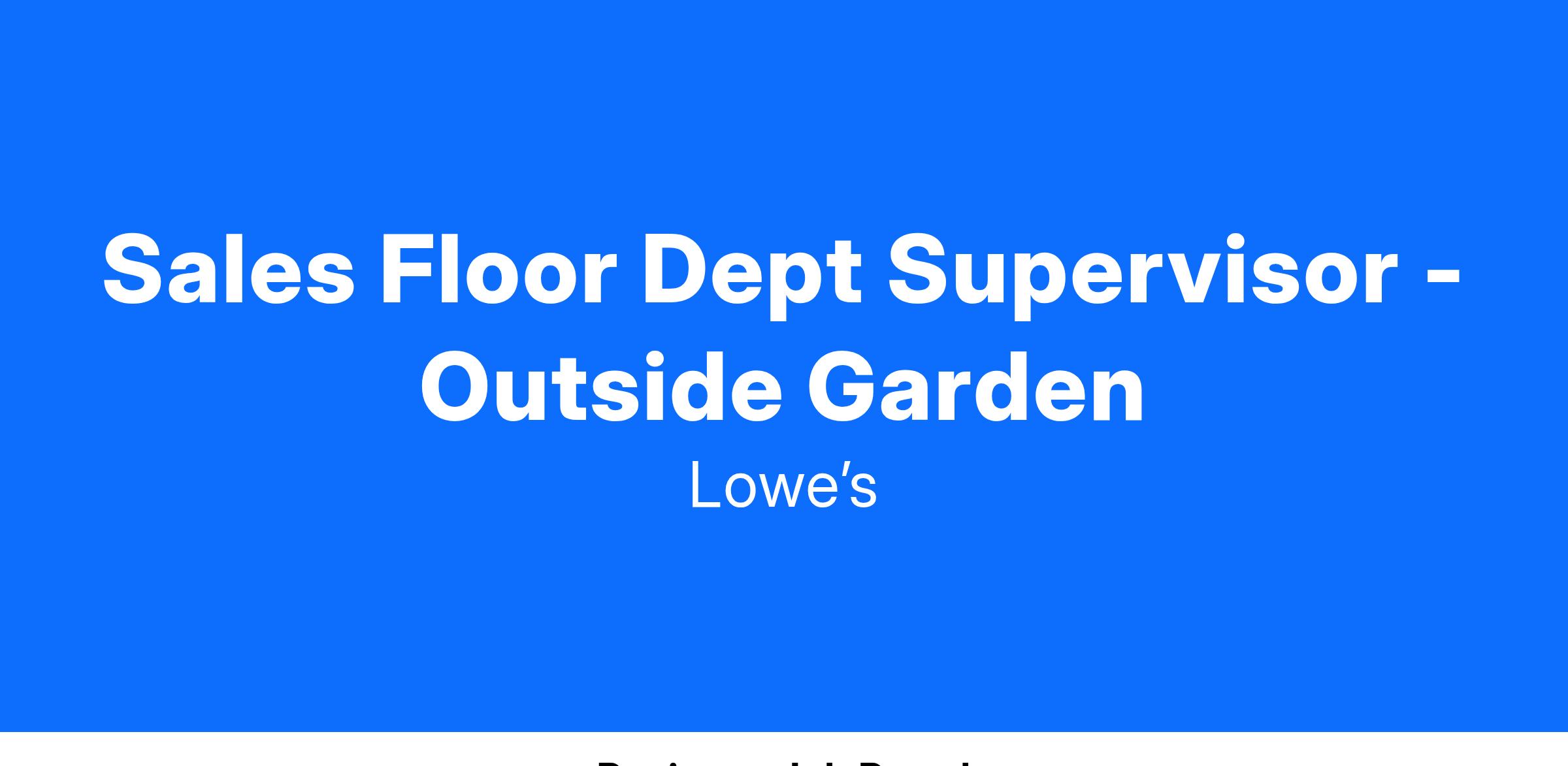 All Lowe’s associates deliver quality customer service while maintaining a store that is clean, safe, and stocked with the products our customers need. As a Sales Floor Department Supervisor, this means: