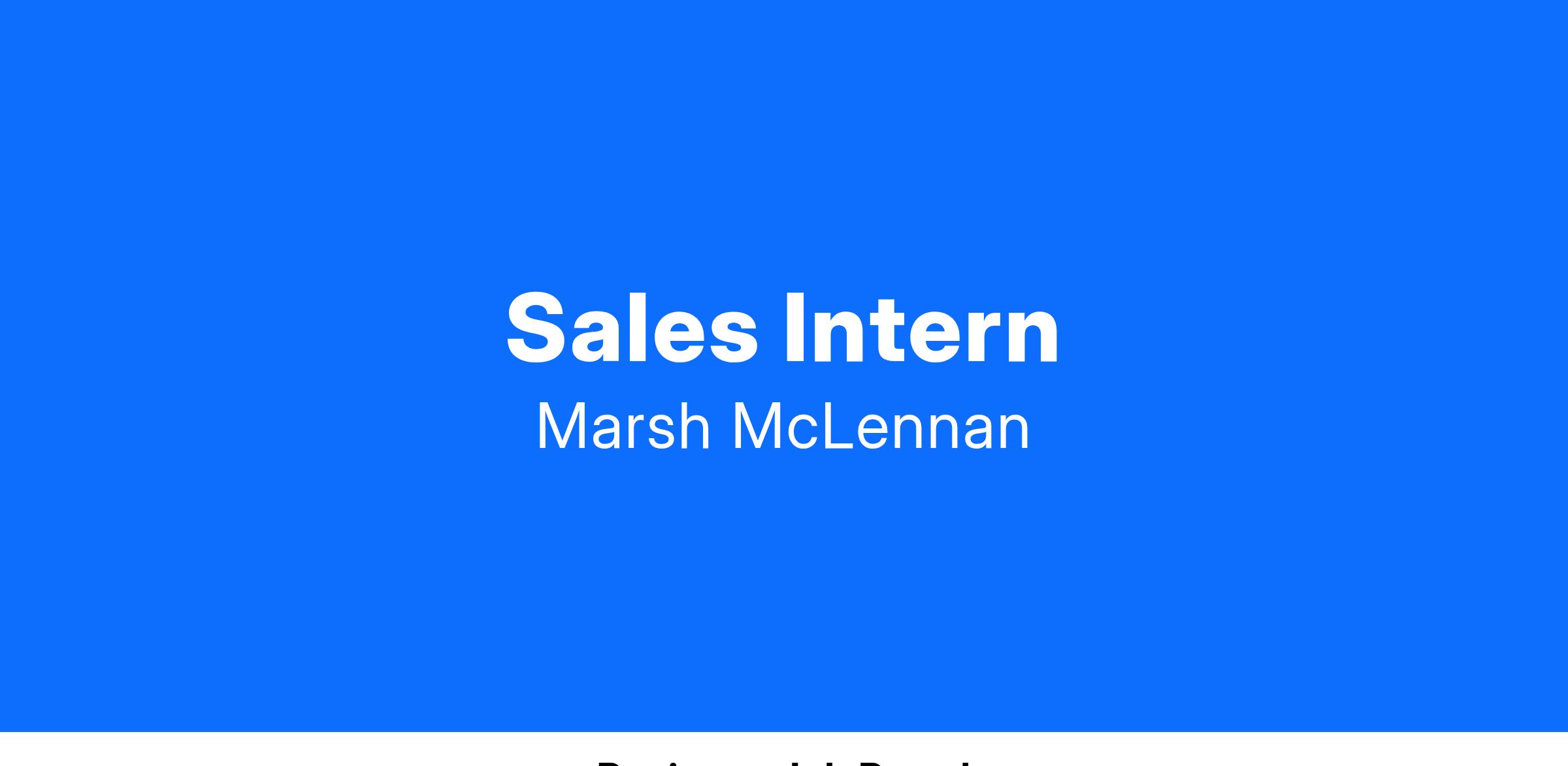 The Marsh & McLennan Insurance Agency LLC Sales Intern Program is designed to prepare individuals to progress into a sales position upon graduation. Sales Interns will build the skills and knowledge needed to do so by working closely with their mentor and their mentorβs team, attending training sessions, and completing projects. Sales Interns will work in a variety of situations, at times working as members of a team and other times working alone on an assignment.