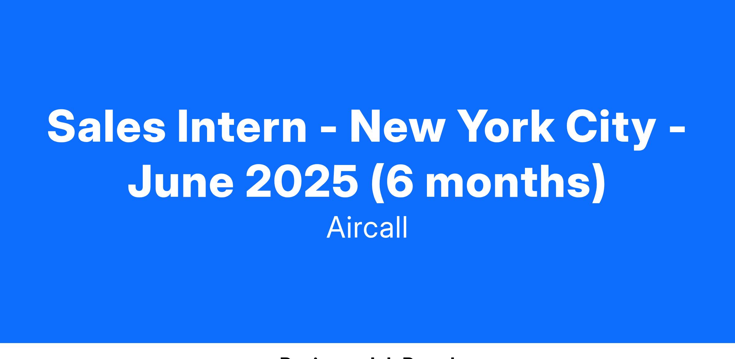 - Support the team in positioning and articulating the Aircall value proposition to small businesses.