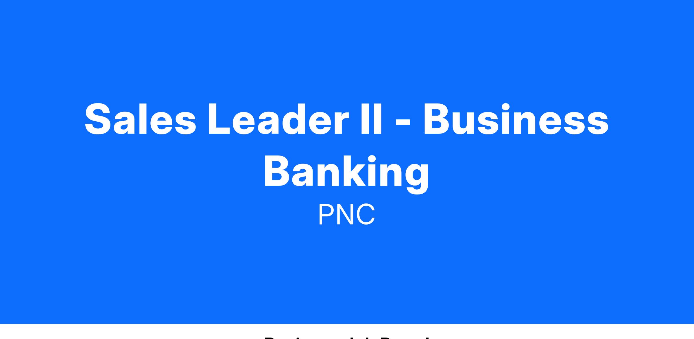 At PNC, our people are our greatest differentiator and competitive advantage in the markets we serve. We are all united in delivering the best experience for our customers. We work together each day to foster an inclusive workplace culture where all of our employees feel respected, valued and have an opportunity to contribute to the company’s success. As a Sales Leader II (General Sales Executive) within PNC's Business Banking organization, you will be based in our California/Arizona and Mountain West Markets, with hubs in Southern California, Phoenix and Denver.
