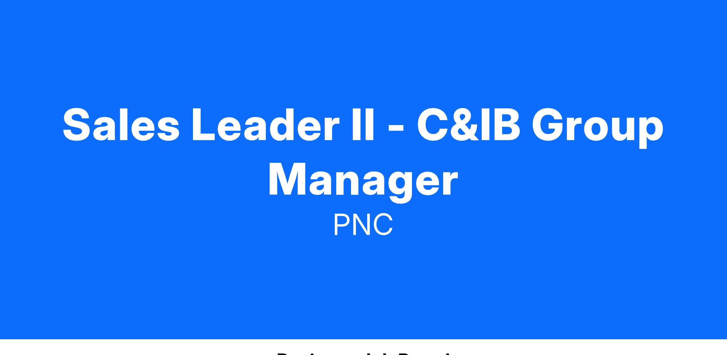 At PNC, our people are our greatest differentiator and competitive advantage in the markets we serve. We are all united in delivering the best experience for our customers. We work together each day to foster an inclusive workplace culture where all of our employees feel respected, valued and have an opportunity to contribute to the company’s success. As a Sales Leader II C&IB within PNC's Commercial organization, you will be based in Charlotte, NC.