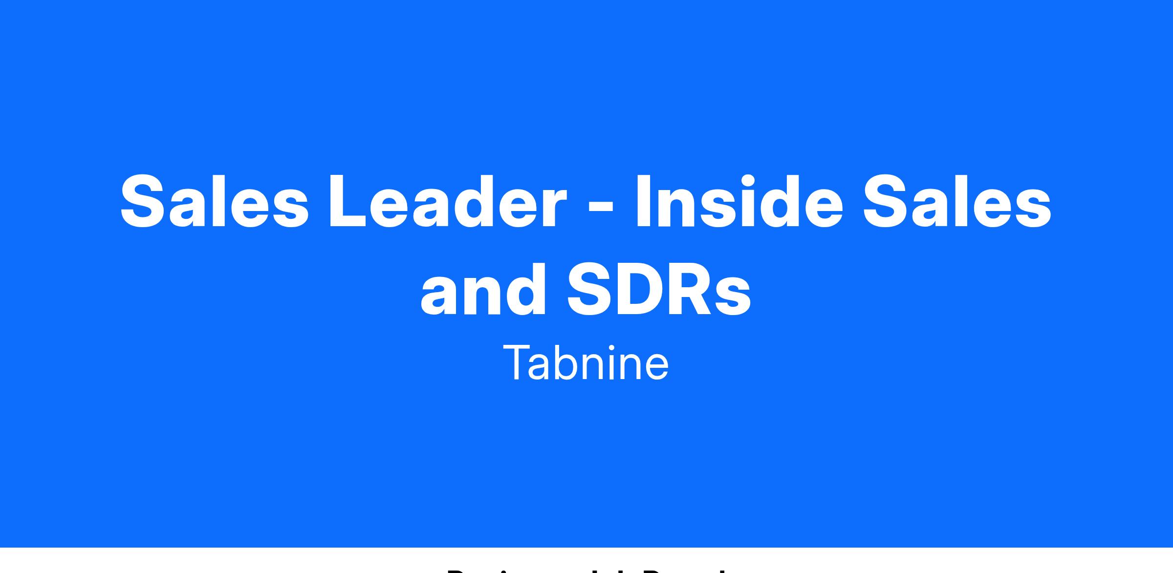 We are looking for a metrics-driven sales leader to establish and run a team of inside sales and SDRs for Tabnine globally. The ideal candidate will have SDLC experience, proven excellence in running metrics-driven sales teams, a proven track record of global recruiting and mentoring, and be a great teammate. The role will immediately manage a team, but will also be expected to play a player-coach role as we define the impact this team can have across the Tabnine Enterprise GTM motions. This role will report directly to the CRO.