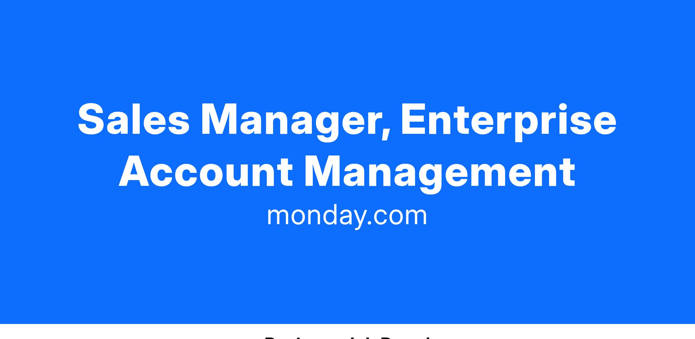Our sales team is growing rapidly and we are looking for an experienced sales manager to grow and lead a group of Enterprise Account Managers to help drive monday.com's success forward.