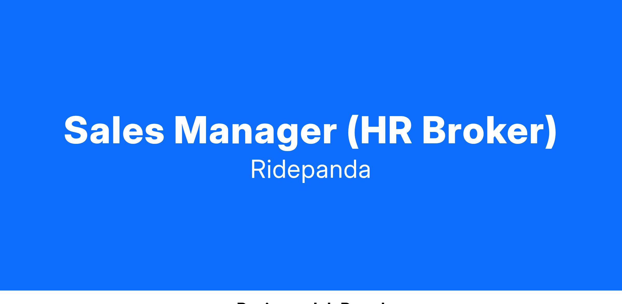 Ridepanda is seeking a dynamic and visionary Sales Manager (HR Brokers) to drive our next phase of growth. This pivotal role will be responsible for leading our HR broker sales strategy, with a primary focus on acquiring partnerships with HR brokers and consultants like Mercer, Gallagher, WTW. Reporting directly to the founders, you will play a critical role in shaping our go-to-market strategy, and driving top-line growth.