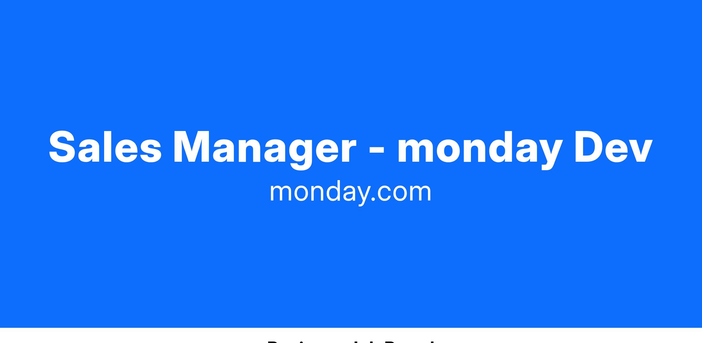 We’re looking for an experienced sales manager - specializing in Agile software sales - to oversee a team focused on driving the success of our new monday Dev product! https://monday.com/dev