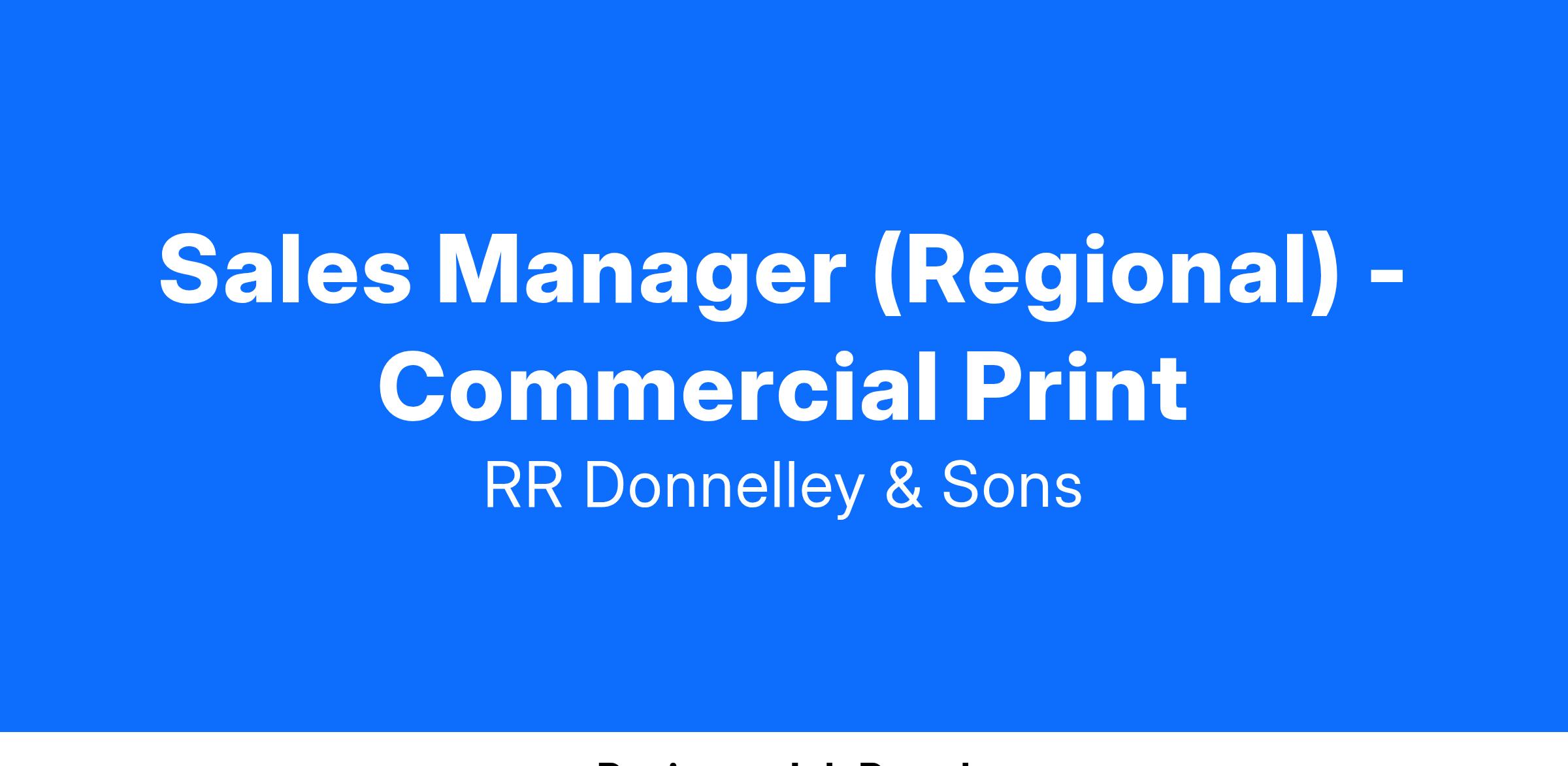 Manages Commercial Print sales, service and distribution of products and services within the Southeast Region through assigned sales representatives and sales office activities. Ensure the maximum sales volume and profitability for the organizations products and services in assigned region. Candidates needs to be based in the Southeast, but not necessarily in Orlando or Florida.