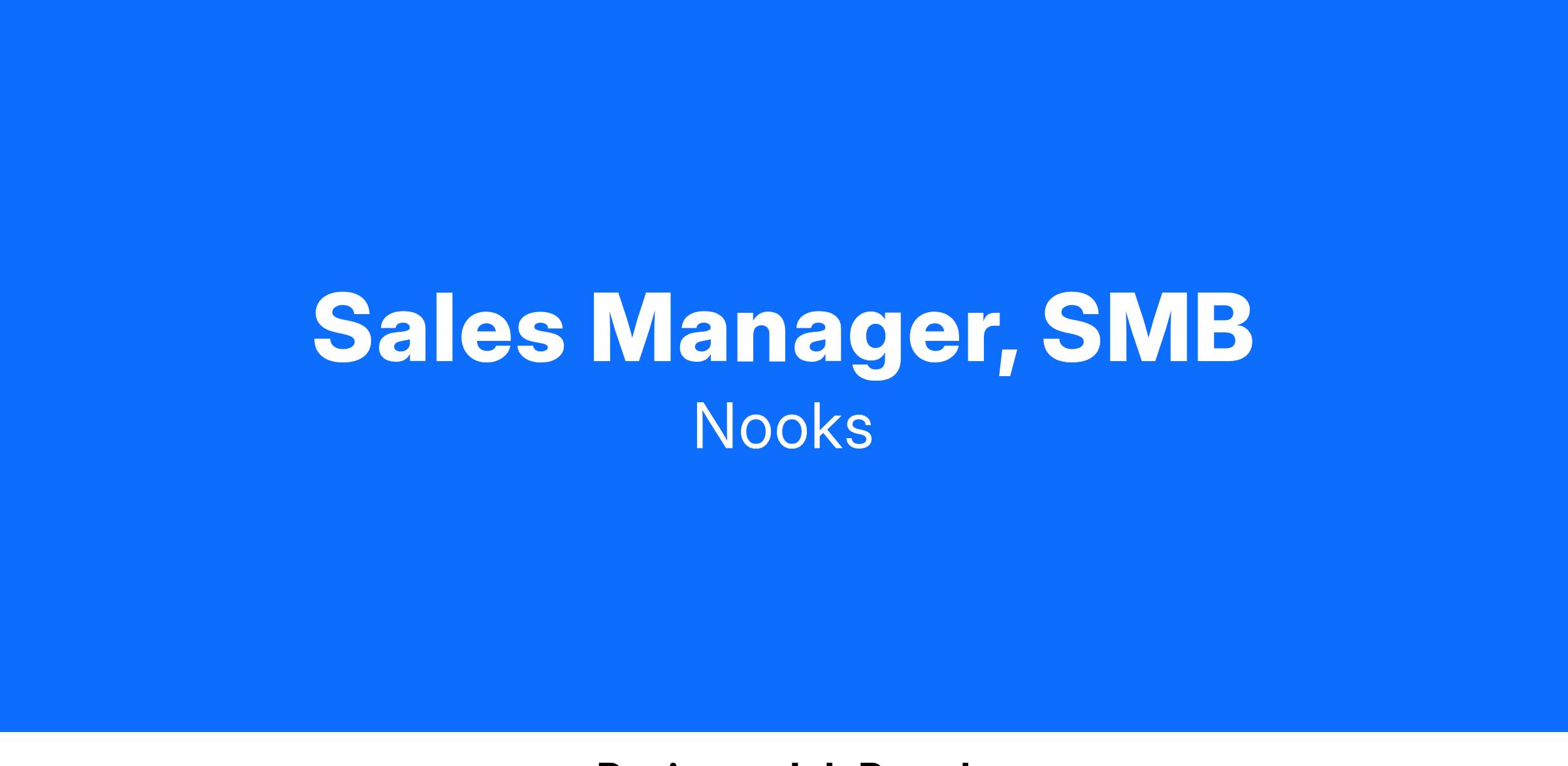 We’re looking for an SMB Sales Manager to help us build out our growing sales team. This is an important role as it’s our first external sales management hire. To date, all sales management roles have been filled via internal promotion. This person will help us execute and refine our sales playbook as we scale the SMB sales org. You shouldn’t be afraid to get your hands dirty, help your team drive deals forward and lead by example.