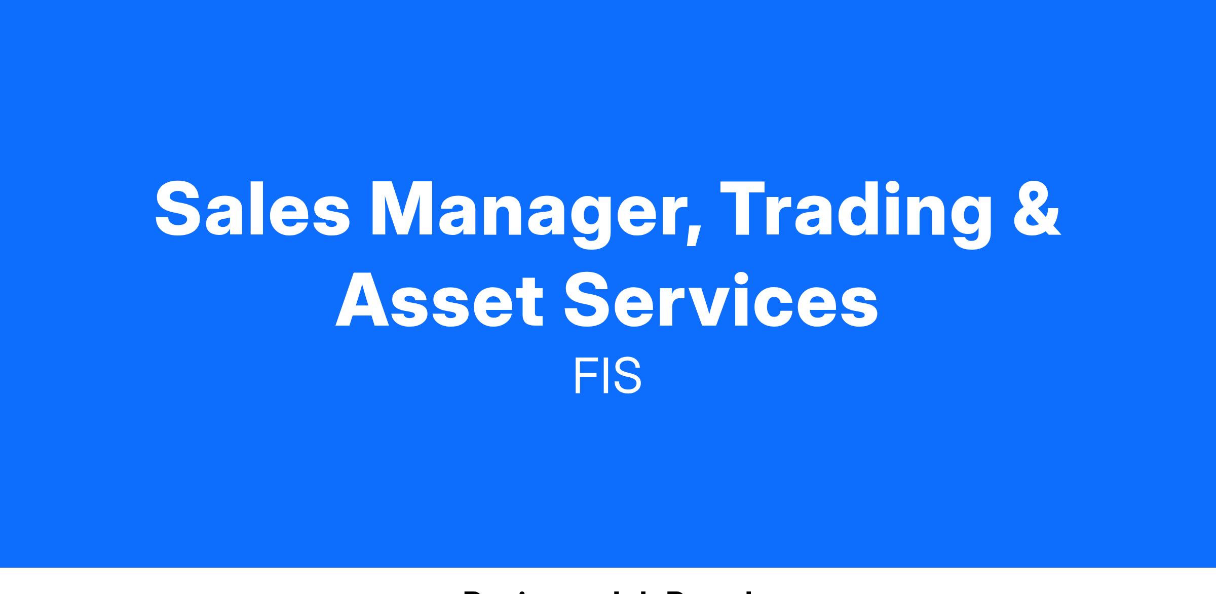 Experienced Sales leader with a proven track record of successfully selling complex enterprise-wide solutions within a matrixed organization. The Sales leader will oversee and develop a team of experienced Sales Executives, within Capital Markets Trading & Asset Services Solution Suite, as we advance the way the world pays, banks, and invests. This will include driving revenue growth, building solid relationships, and supporting FIS revenue goals, strategies, and objectives.