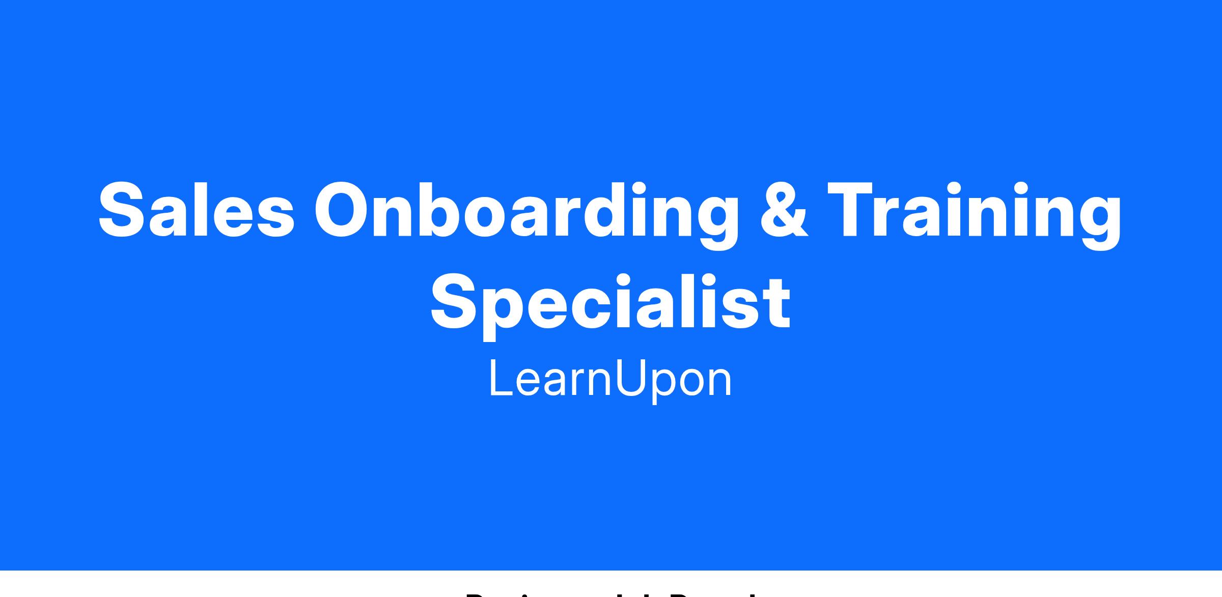 As LearnUpon’s Sales Onboarding & Training Specialist reporting to the Director, Learning, Enablement & Inclusion, you’ll be responsible for running our global Sales onboarding program, ensuring all reps are “role ready” in 30 days to build quality pipeline and achieve their ramp targets. You’ll support remote teams, work across multiple timezones and manage competing priorities.