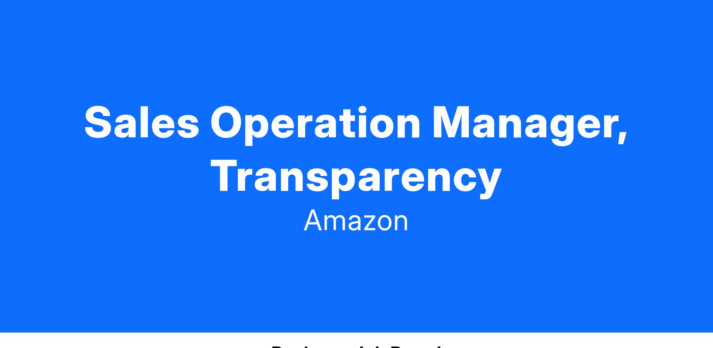 Sales Operation Manager, Transparency