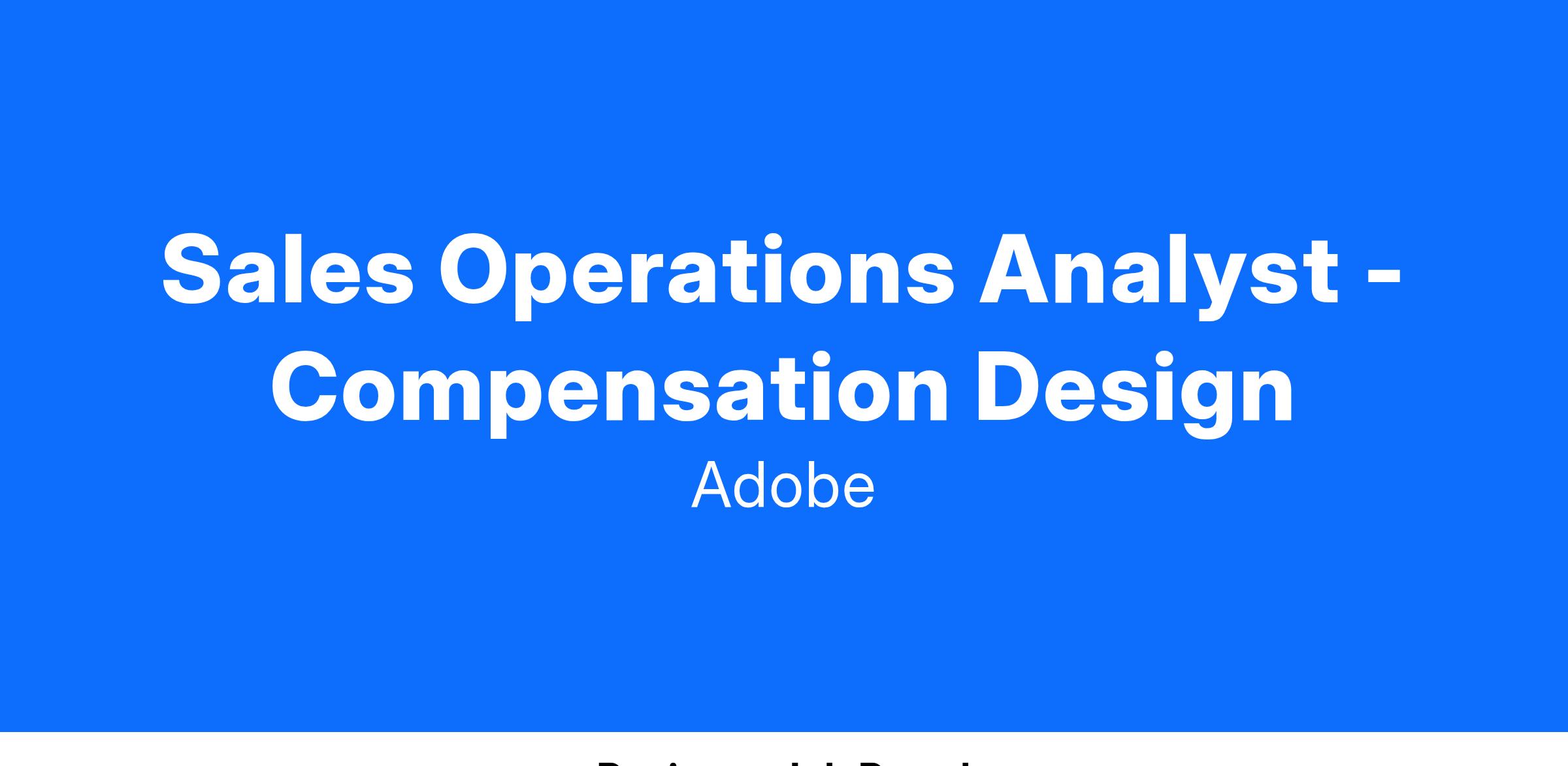 The Sales Compensation team is responsible for helping define the incentive strategy and operations of a best-in-class sales force for Adobe. Reporting into the Director of Sales Compensation within the Sales Compensation Design, Analytics, and Policy Team; you will drive sales compensation strategy, analytics, and programs to support Adobe’s strategic objectives, meet legal requirements, and be competitive in the market. The ideal candidate will have a background in sales strategy and operations, building complex Excel models and leveraging BI reporting while being able to effectively communicate with executive leaders to inspire change and performance to company targets.