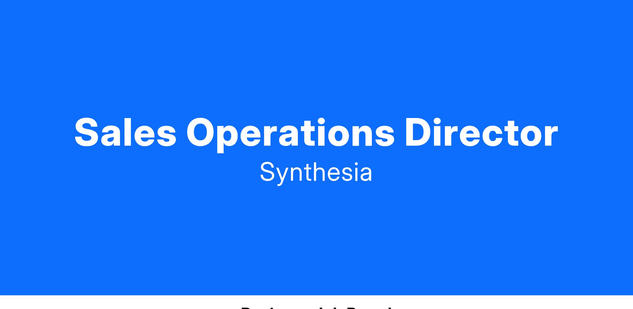 Synthesia is looking for a Sales Operations Director to join our Revenue Operations team and focus on driving efficient sales performance. Reporting to the Head of Revenue Operations, the Sales Operations Director will partner closely with our CRO and VP of Sales, and work closely with our Sales leadership, to identify bottlenecks and inefficiencies in the sales process, drive operational excellence across the sales organisation, and unlock data-driven insights to help us continually improve. This is an exciting opportunity for someone who is technically strong and detail-oriented, with experience leading a Sales Ops function within a fast-growing SaaS environment.