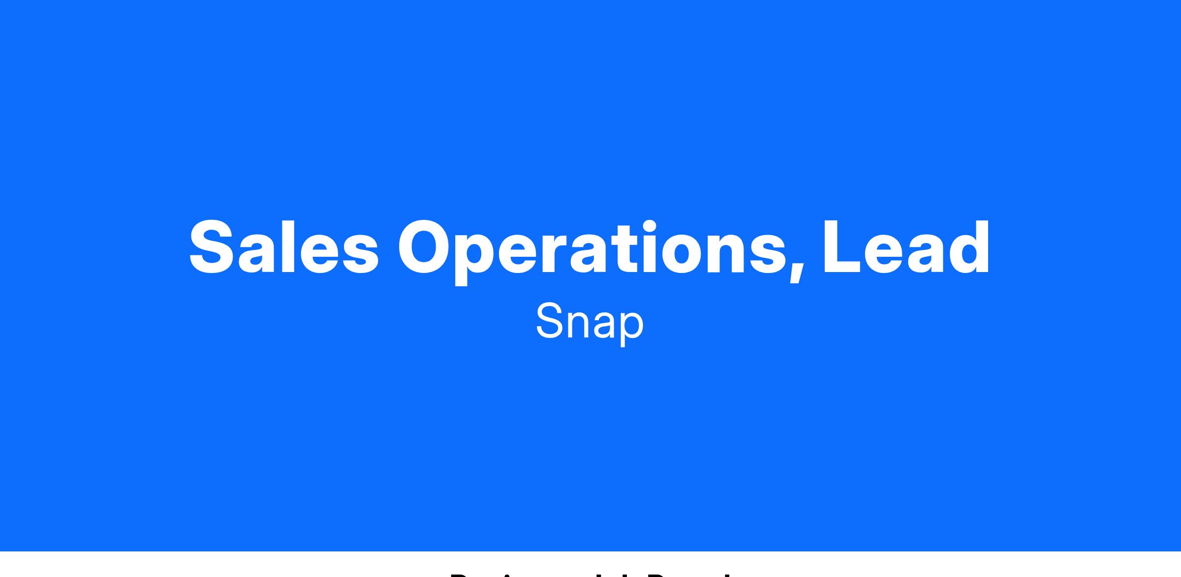 We’re looking for a Sales Operations Lead to join our team at Snap! The mission of the Sales Strategy & Operations group is to maximize ads business growth and performance by being the objective, trusted partner to the Sales Leadership – through strategic planning, cross-functional collaboration and operational excellence. Your role will be aligned to the North America Large Customer Sales (LCS) team, which focuses on driving advertiser revenue growth via depth of brand / business unit spend across the largest and most prominent Fortune 500 advertisers. Within this role, you’ll collaborate with Sales Leadership and Cross Functional Partners such as Marketing, Product and Finance to identify areas of market opportunity, craft plans to capture those opportunities and reinforce the operational backbone of the Sales team. You will also work closely with Sales Leaders to track pipeline health and forecast revenue growth. This role plays a critical role in spearheading critical initiatives that power the Sales team’s growth and success.