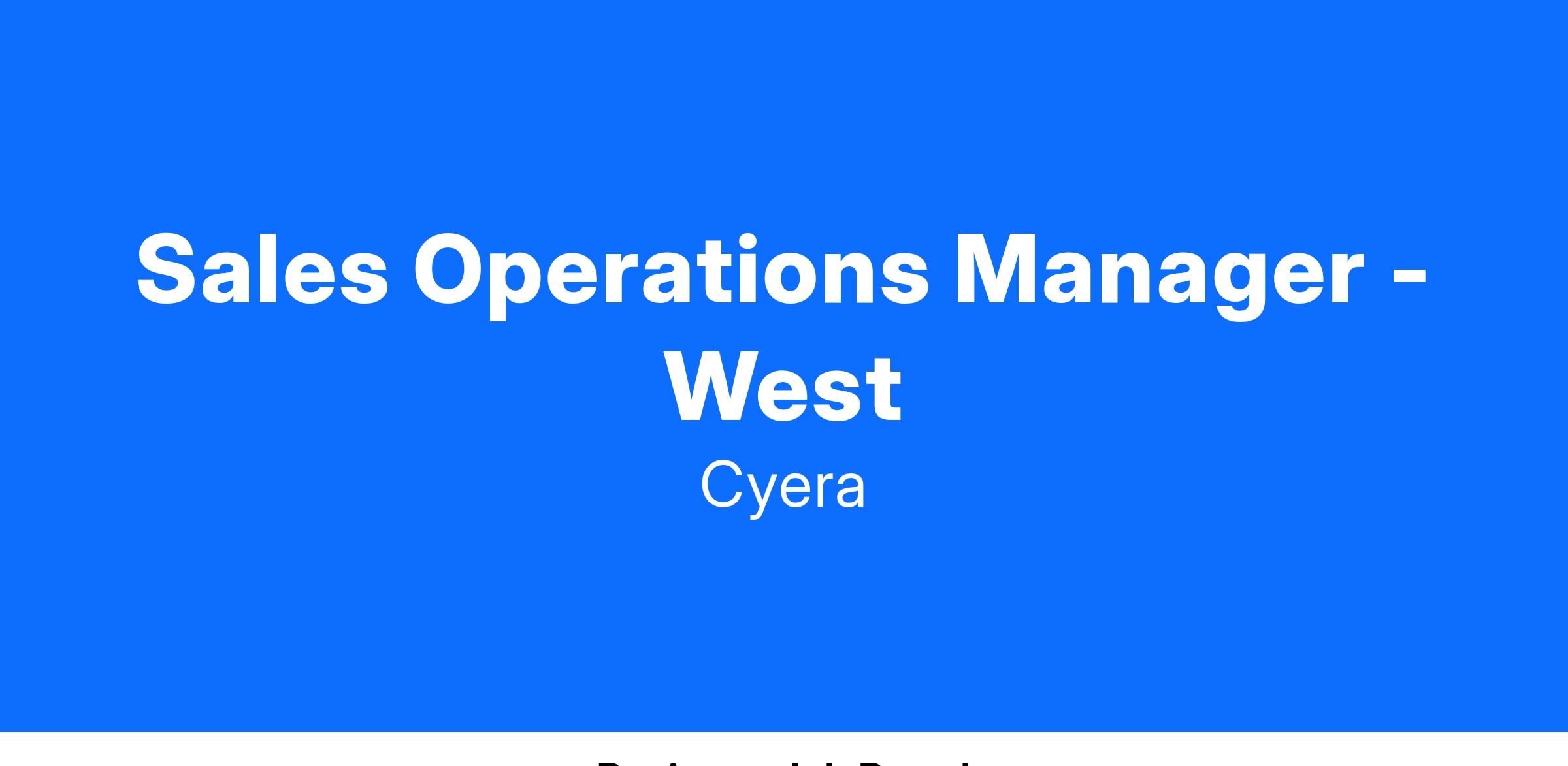 Cyera is looking for an individual contributor Sales Operations Manager to join our Revenue Operations team, supporting our Enterprise sales organization as a high-level individual contributor. SOMs work directly with field leadership teams, providing timely analytics and business insights to drive successful performance against established business metrics. We are trusted business advisors that serve as critical members of our field organizations, driving operational rigor, go-to-market planning and execution, and business processes to support a fast-paced hyper-growth sales team. The ideal candidate will have a background in end-to-end sales operations, with an ability to support decision-making through data and analytics, and leveraging the tech stack to deliver real-time business insights and reporting. You will be able to effectively communicate with executive leaders to inspire change and performance to company targets.