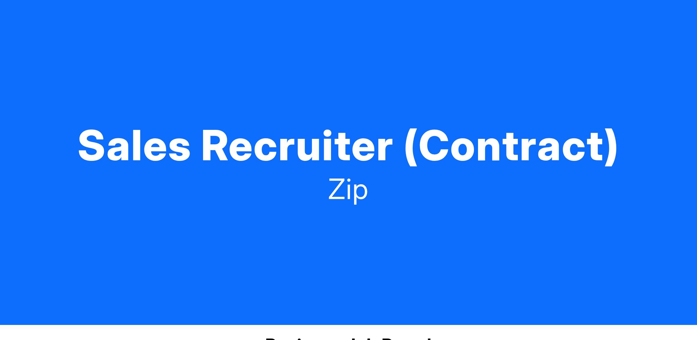 As Zip's foundational sales team recruiting member, you will be responsible for one of the top priorities of the company -- building the team that is the lifeblood of our organization. You will be responsible for all aspects of the recruiting lifecycle from sourcing to screening to closing candidates for our sales organization. The ideal candidate is a self-starter who is able to work independently and help define and manage recruiting processes. To thrive in this role, you should love working on both volume and more complex roles, and seek out high-impact work with broad visibility across the company.