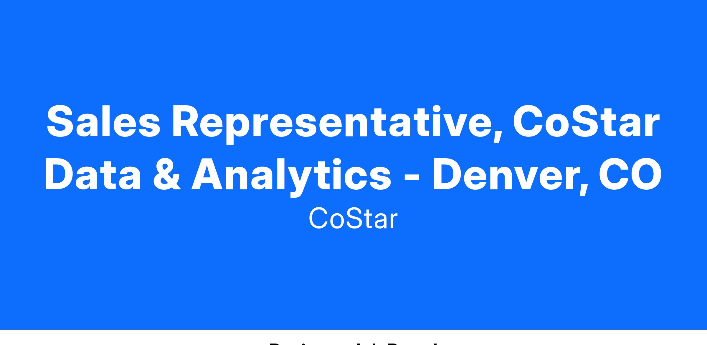Sales Representative, CoStar Data & Analytics - Denver, CO