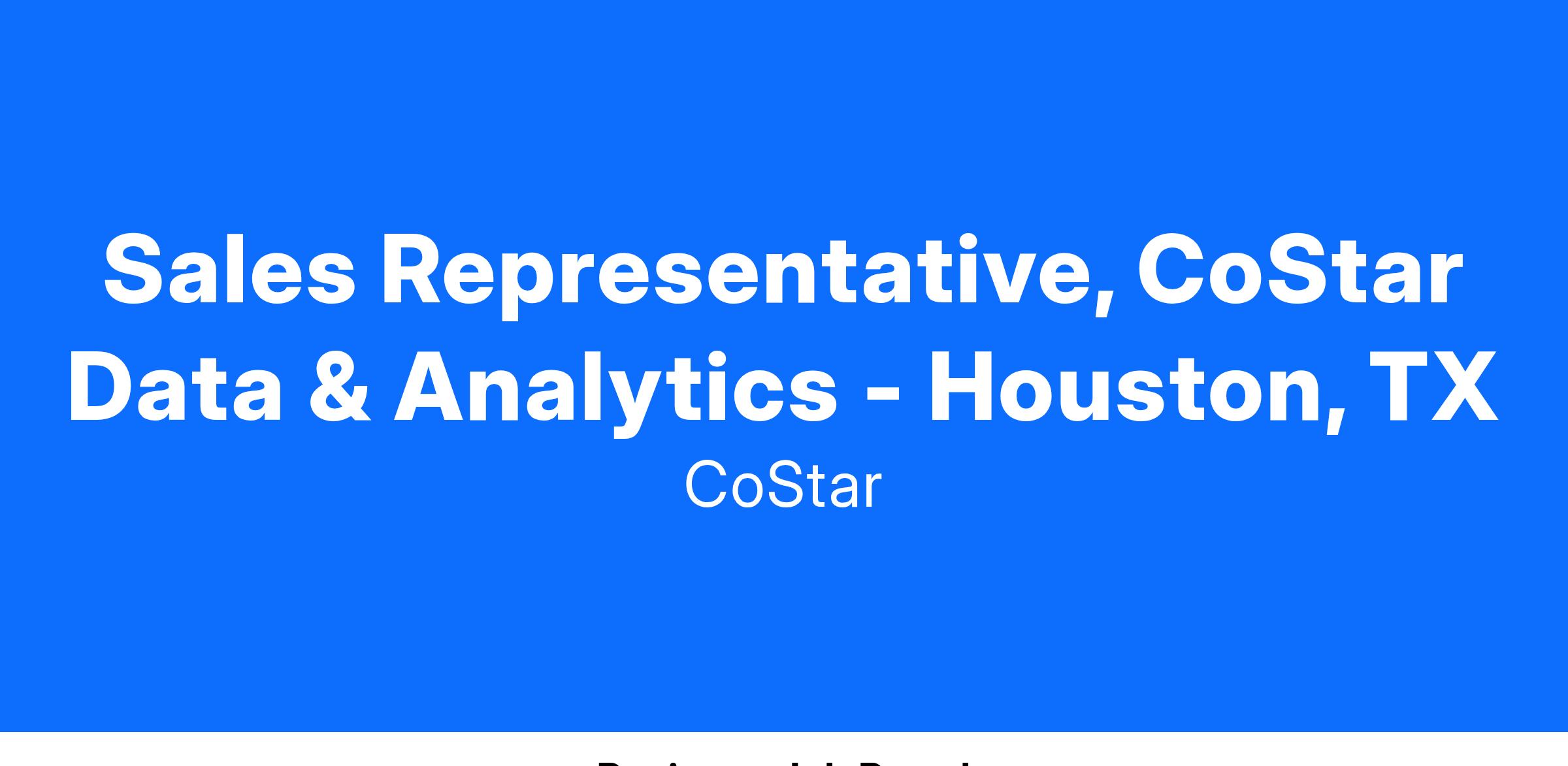 Sales Representative, CoStar Data & Analytics - Houston, TX