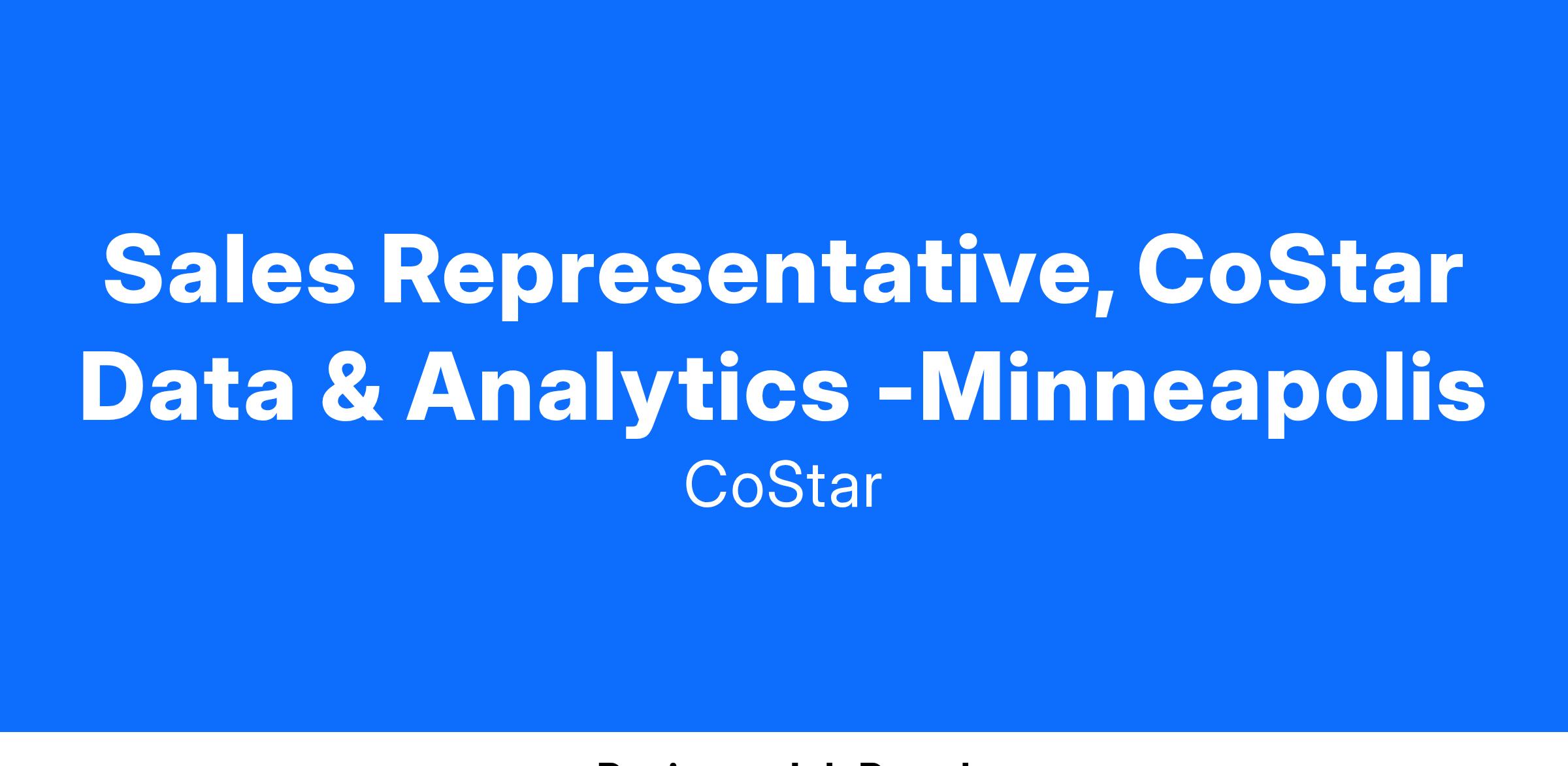 Be part of a team of sales professionals enjoying the opportunity to learn, do, and grow in a rewarding atmosphere. But don't just take our word for it -- see why our team chose to work at and stay at CoStar Group: https://www.youtube.com/watch?v=CVbJRnJ2sX0
