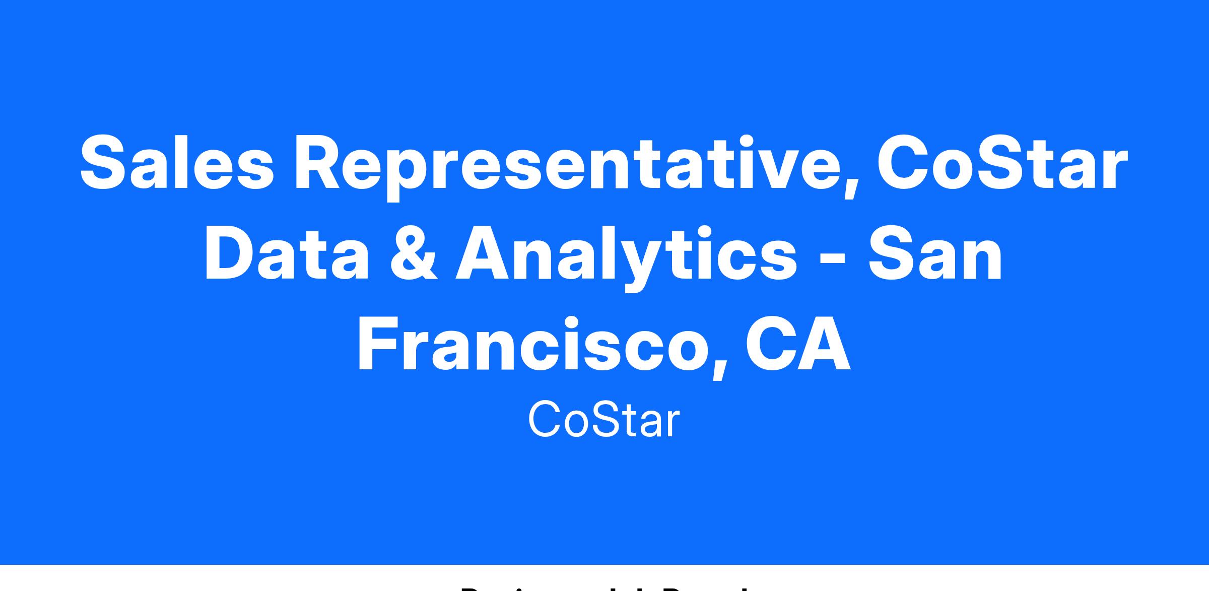 Sales Representative, CoStar Data & Analytics - San Francisco, CA
