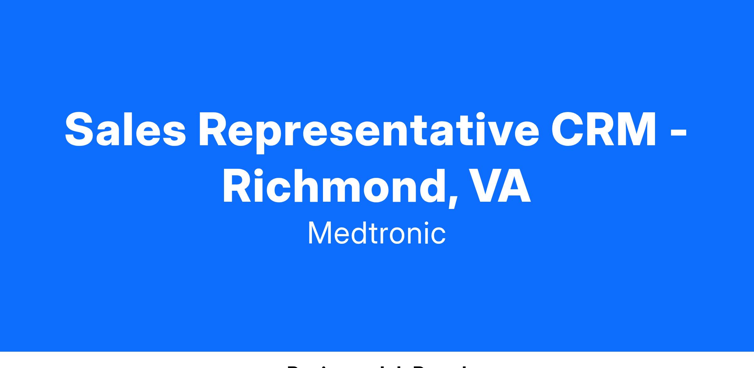 To find all Cardiac Rhythm Management sales roles available please use #crmsales in the key word search at Medtronic Careers