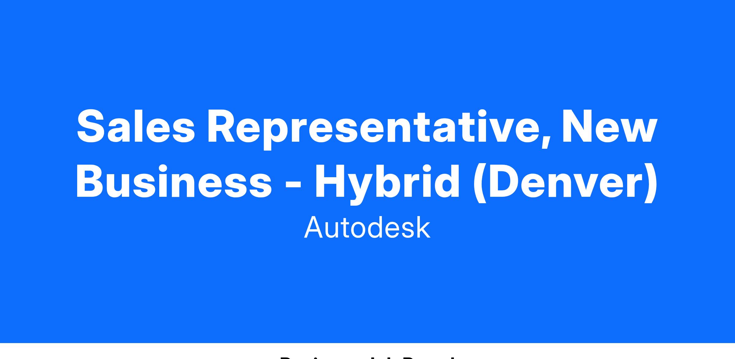 Working in sales at Autodesk allows you to build meaningful relationships with customers while growing your career. Join us and help make a better, more sustainable world. Learn more here: https://www.autodesk.com/careers/sales