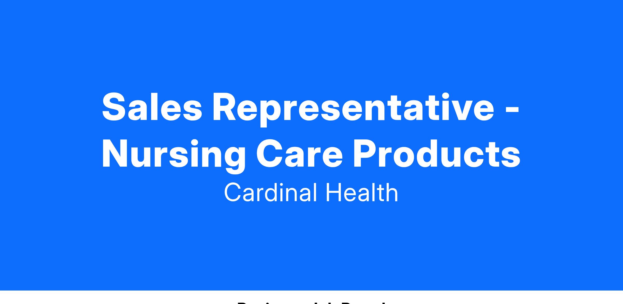 The Nursing Care products portfolio is composed of numerous clinical and commoditized medical products utilized for patient care and clinician protection. This will be a hybrid role, where the majority of supporting and closing of sales will be onsite at the acute hospital, though some commoditized products can be supported and sold via remote technologies.