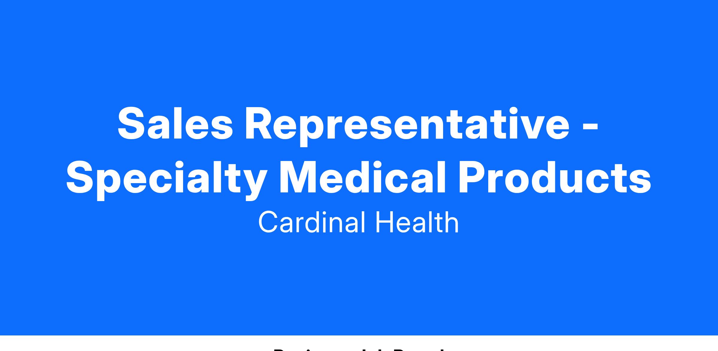Sales Representative – Specialty Medical Products