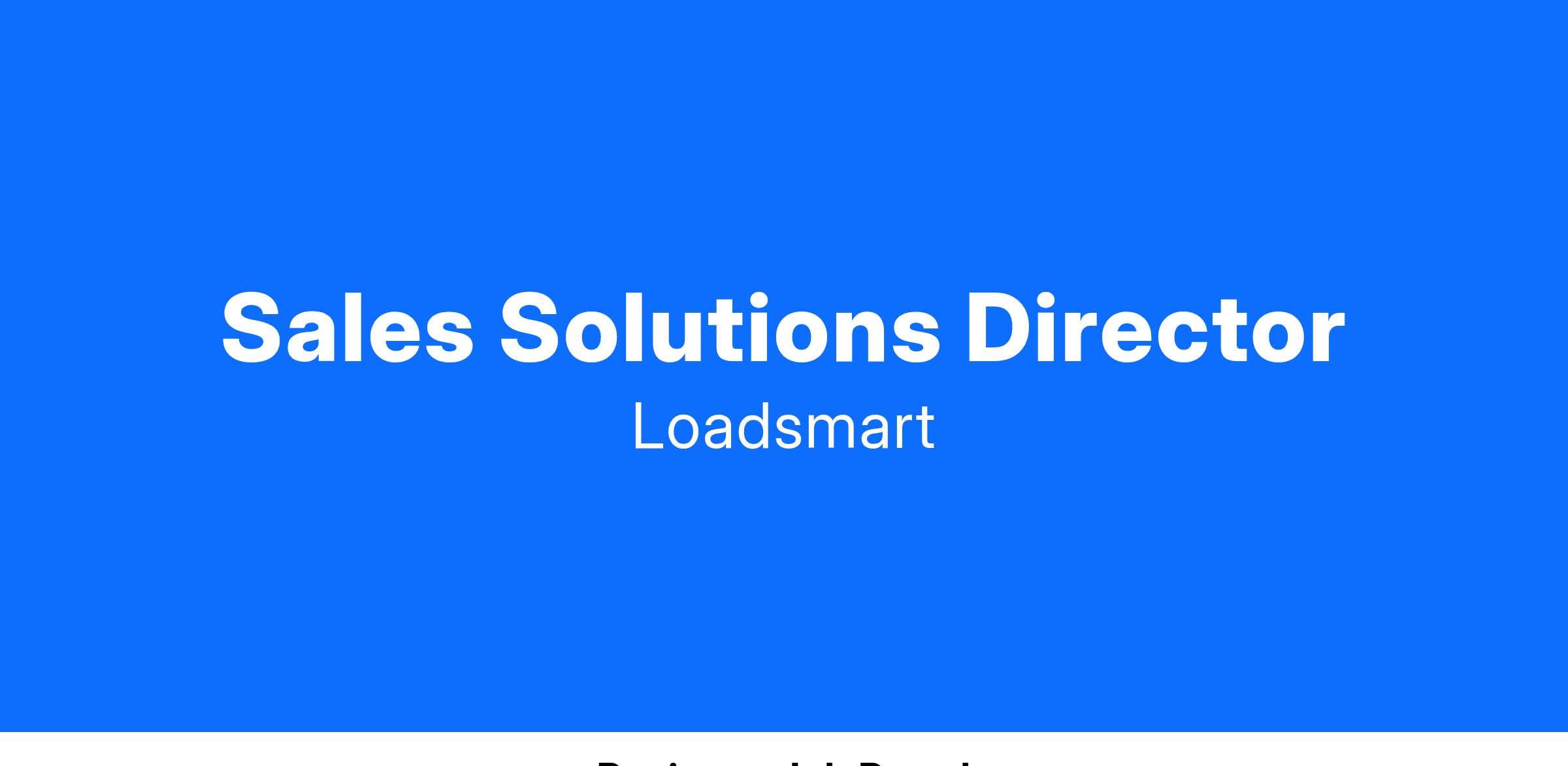 If so, nice to meet you! We are Loadsmart and we are adding Solution Sales Directors to continue to fuel our growth by accelerating the acquisition of new customers. The Solution Sales Director is responsible for driving new business growth within the Loadsmart Shipper Solutions Group.