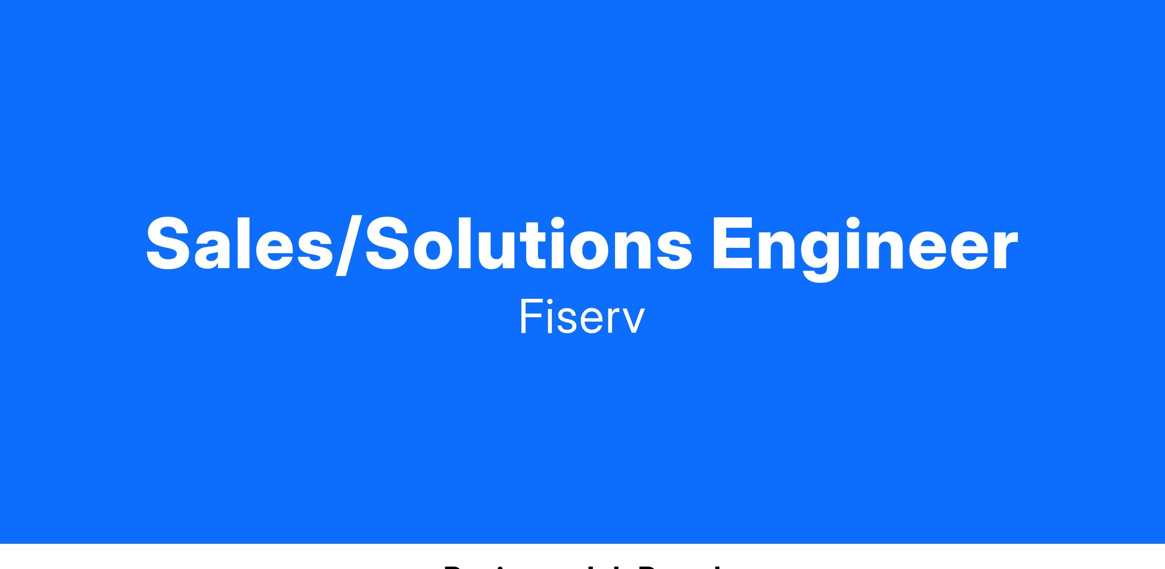 Sales/Solutions EngineerWhat does a successful Sales/Solutions Engineer do at Fiserv?