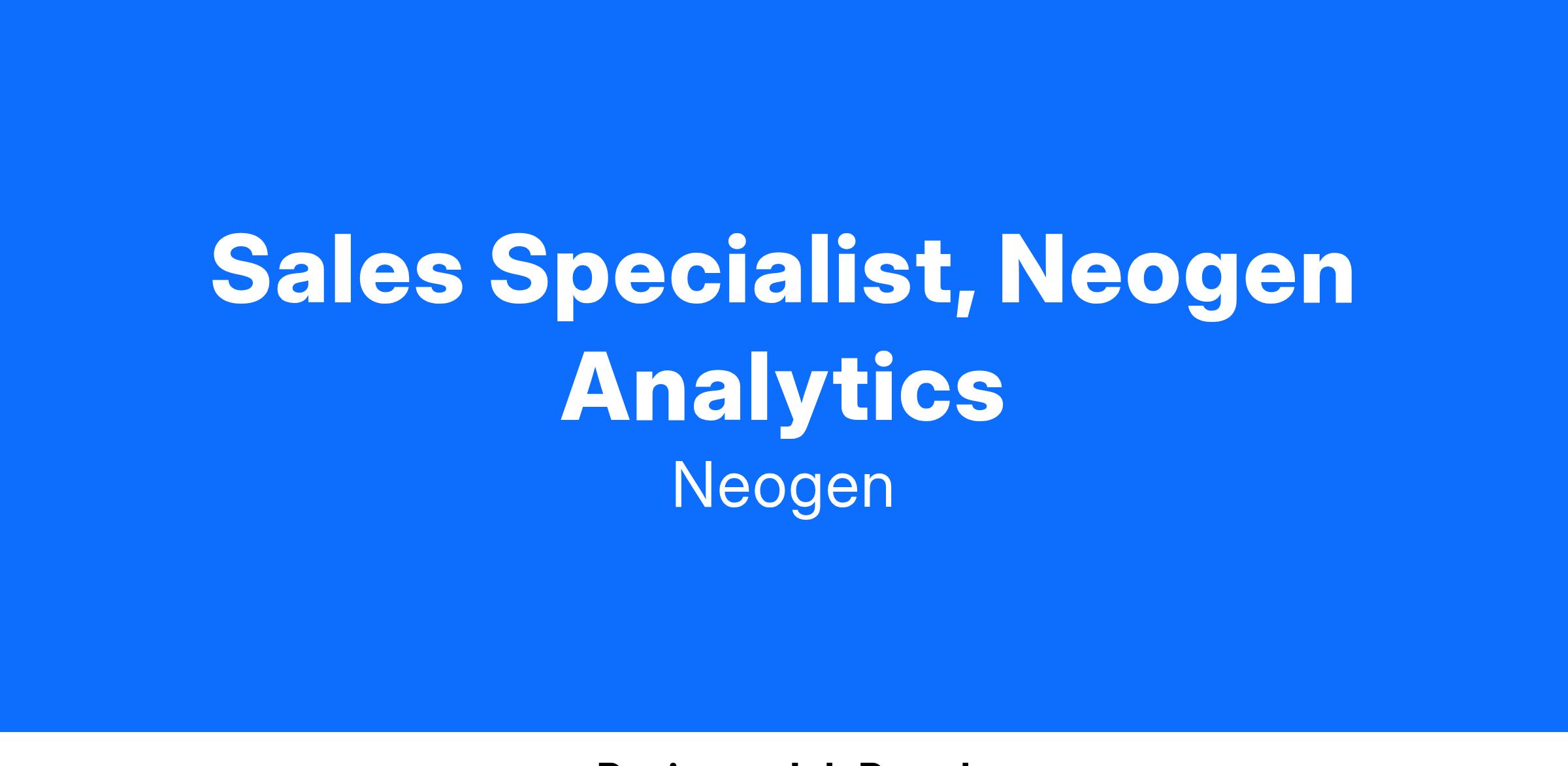 The Sales Specialist for Neogen Analytics reports directly to the Director of Food Safety Sales and is responsible for direct sales activities and revenue for Neogen Analytics. The Neogen Analytics Sales Specialist (NASS) will be a sales leader with a high sense of urgency who thrives in a high growth environment focused on solution selling. This position is a cross functional sales position requiring the ability to work with territory managers and major account managers to qualify opportunities and execute a sales strategy and plan that includes multiple Neogen sellers. Many of the sales are complex multi account sales so the individual must be able to manage a complex deal structure, enfranchising key players at the corporate and plant level. You will provide complete and appropriate solutions for every customer to boost top-line revenue growth, new market share and growth in customer share of wallet.
