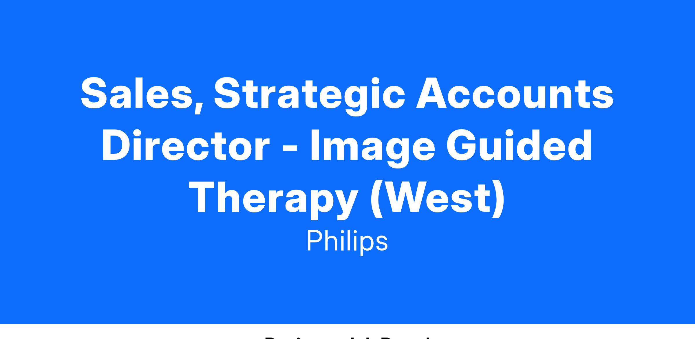 The Director of IGT Strategic Accounts will work with 2 IGTS Districts and be responsible for order and revenue growth at a targeted set of named accounts. Your primary responsibilities will be to act strategically and grow Philips Marketshare by focusing on: