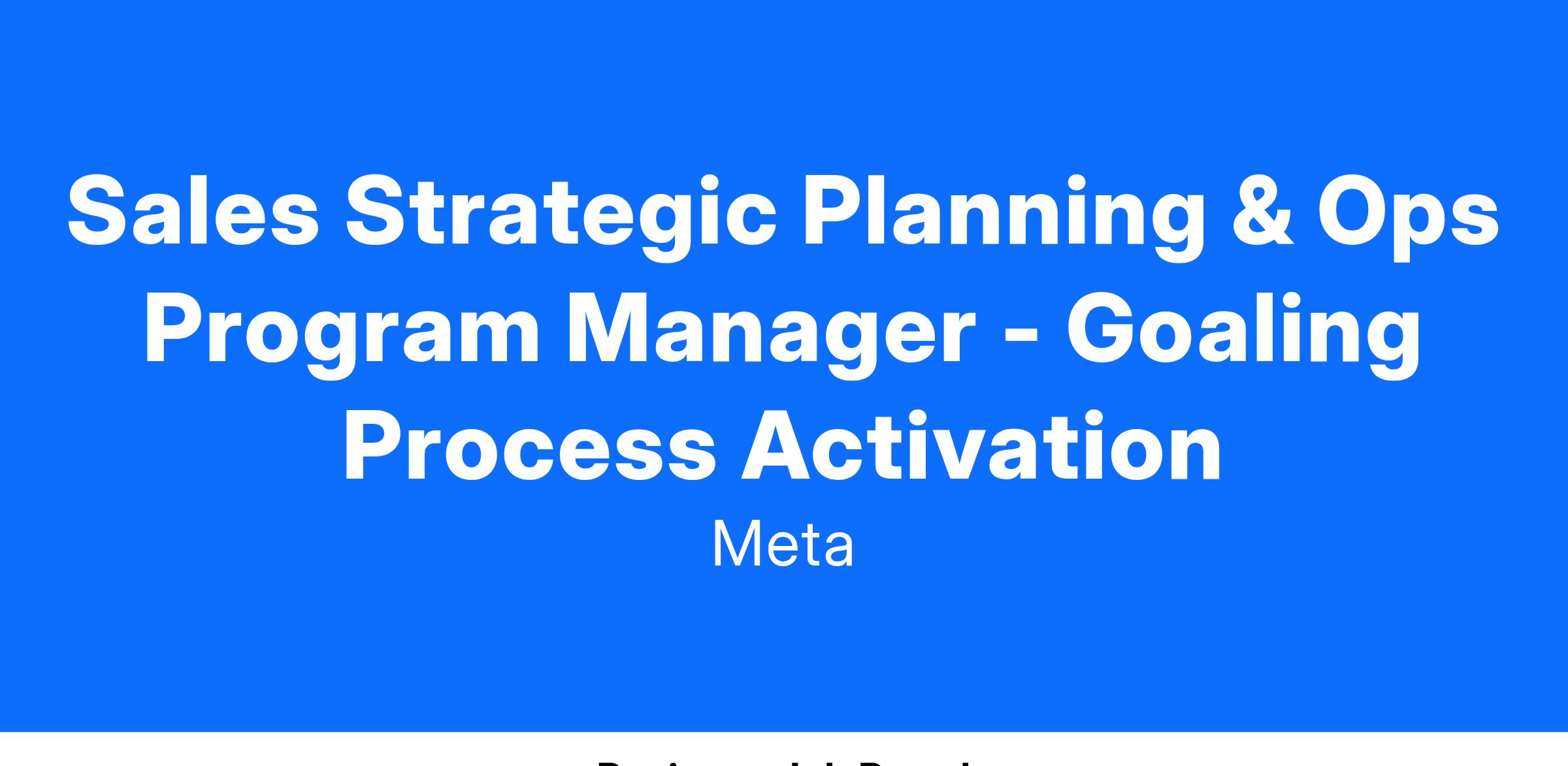 Sales Strategic Planning & Ops Program Manager - Goaling Process Activation Responsibilities