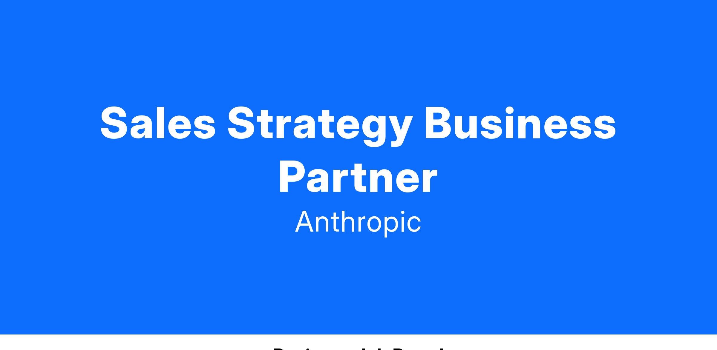 As a Sales Strategy Business Partner you will work closely with sales leadership to be a deep expert in a critical segment of the business. This includes segment analysis, facilitating operating cadences and powering business reviews, improving operational efficiency, driving strategic initiatives, and supporting the rapid evolution of our sales motions and organization. As such, this role exists to materially improve the efficiency and effectiveness of Anthropic’s sales efforts.